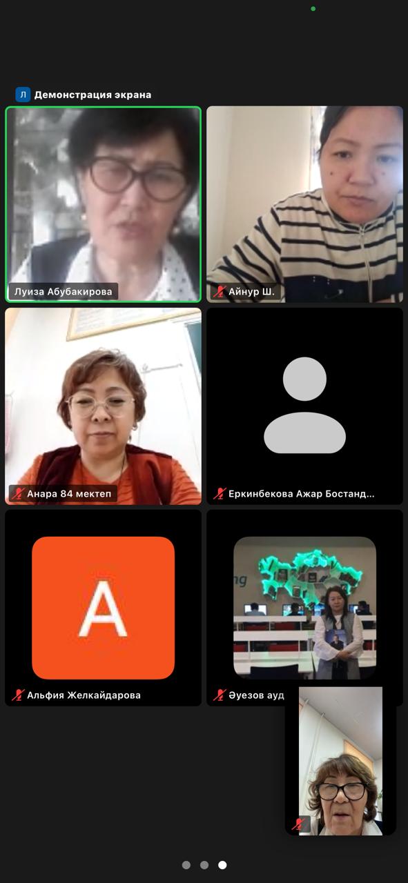 Трансляцияға Бостандық ауданының мұғалімдері А.М.Ауғанбаева, Еркінбекова А, Жетісу ауданынан Н.Батырханова т.б. және Түрксіб ауданы мектептерінің мұғалімдері қатысты.