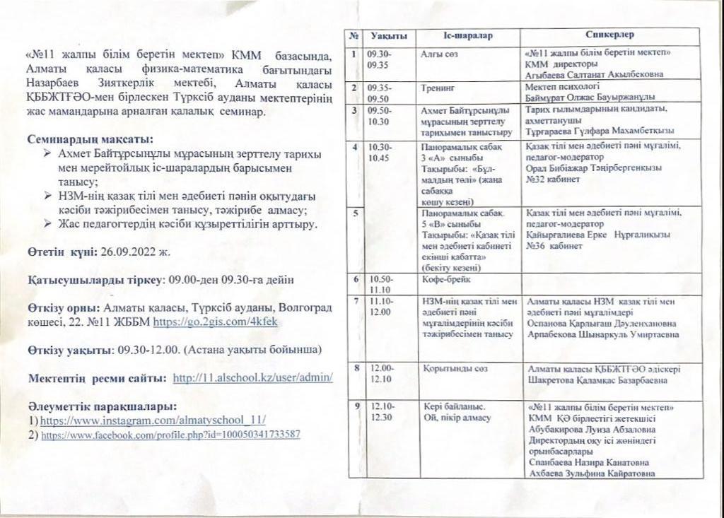 апталығының шеңберінде ұйымдастырылған "Ахмет Байтұрсынұлы идеяларын пәнді оқытуда пайдалану мүмкіндіктері" атты қалалық семинар өткізілді.