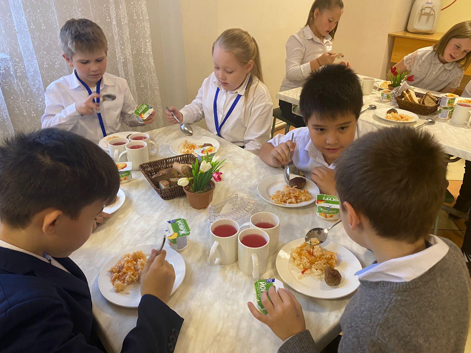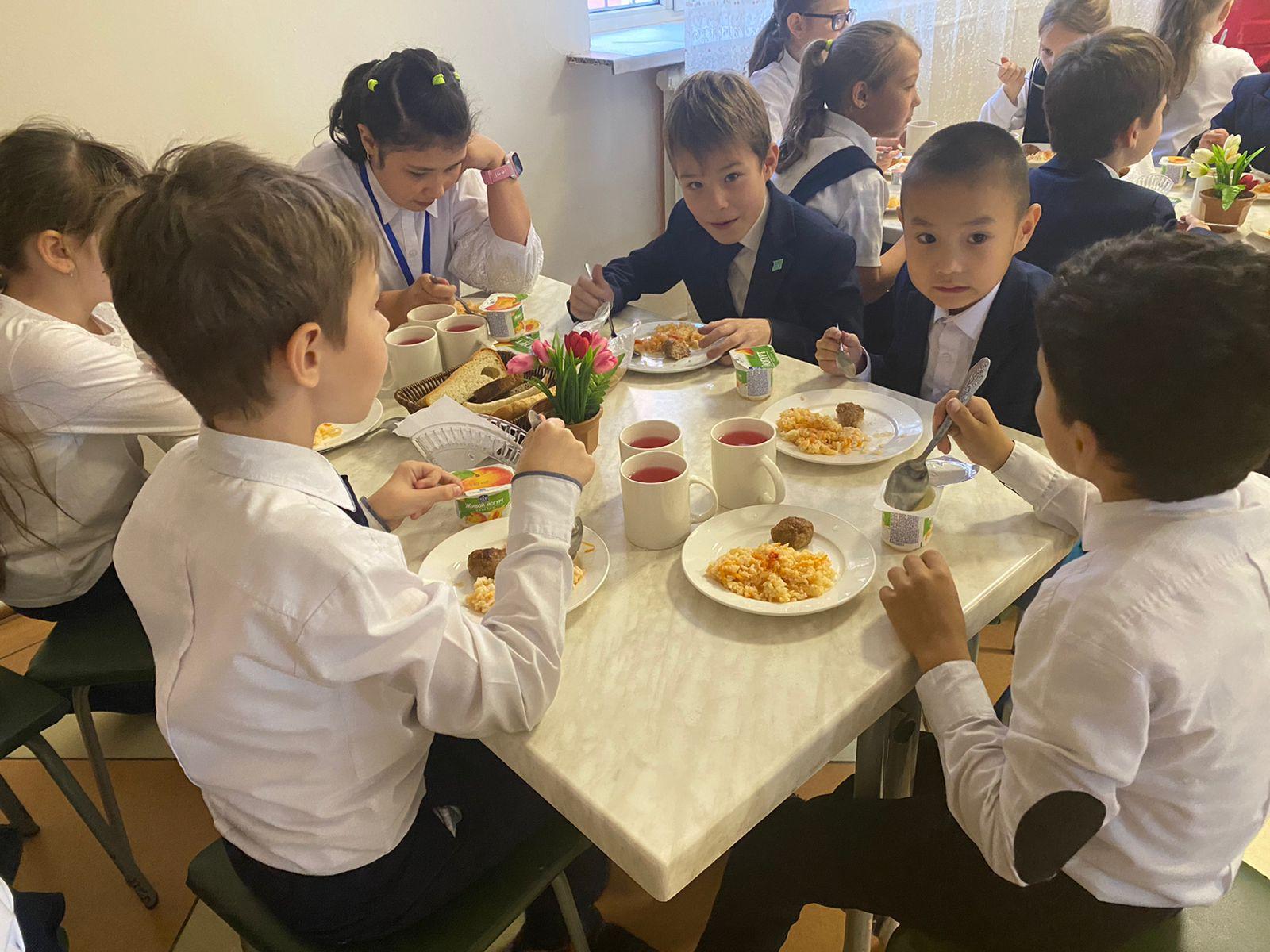 Біздің асханада жылулық пен үйдегі ерекше жағымды атмосфера бар. Сондықтан балалар мектеп асханасына әрқашан қуана келеді. В нашей столовой царит тепло и необычайно приятная домашняя атмосфера. Поэтому дети всегда с удовольствием приходят в школьную столовую.