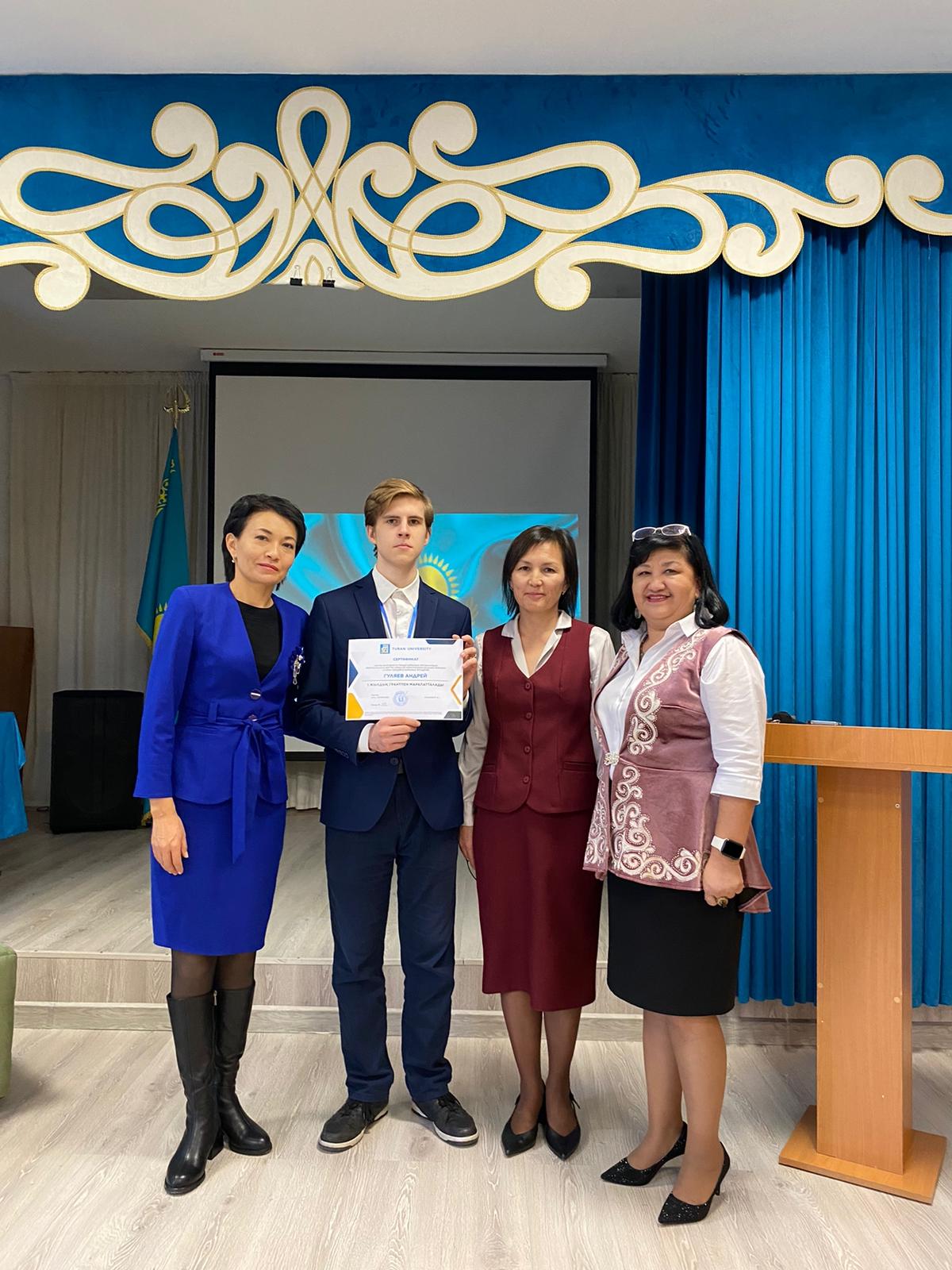 Біздің 11"А" сынып оқушысы Гуляев Андрей Тұран университетінде жылдық грантпен марапатталды / Наш ученик 11"А" класса Гуляев Андрей был награжден годовым грантом в Университете Туран