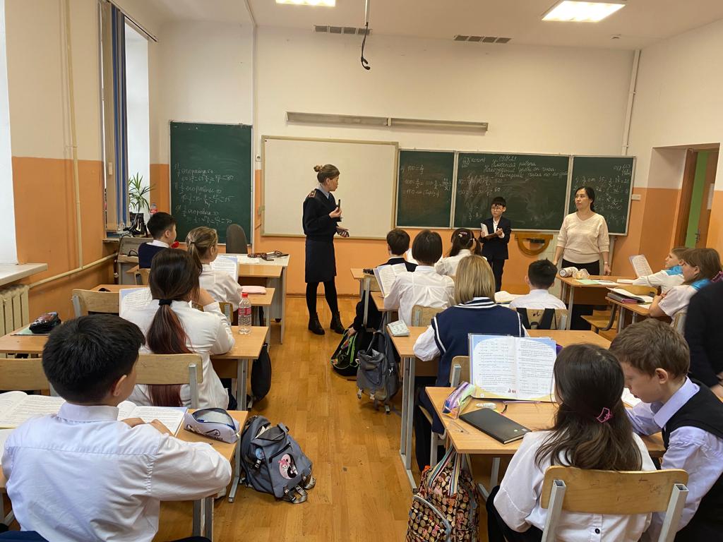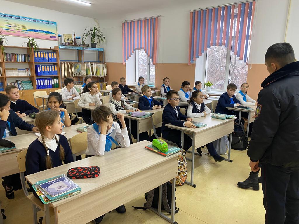 Школа №11 г. Алматы » Ақпарат » Бүгін мектебімізде 5-сыныптар арасында учаскелік инспекторлармен құқықбұзушылық тақырыптарына әңгіме жүргізілді. Сегодня в учащимися 5-х классаов участковыми инспекторами