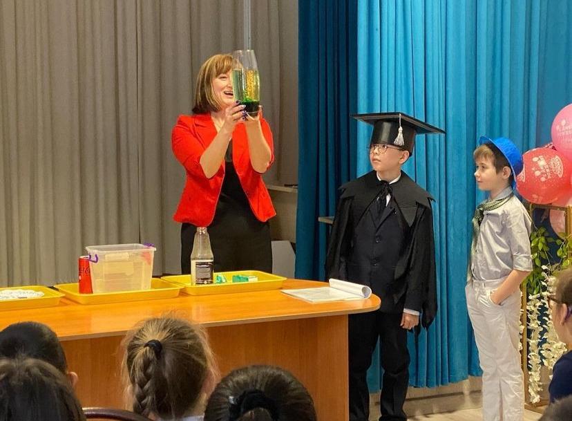 Онкүндіктің ашылуы 4"В" және 4"Г" сыныптардағы жаратылыстану пәндері бойынша сыныптан тыс іс-шара болды. Мұғалімдер Н. В. Штаненко мен з. м. Алиева "белгісіз нәрсенің бәрі өте қызықты"физика-химиялық шоу өткізді