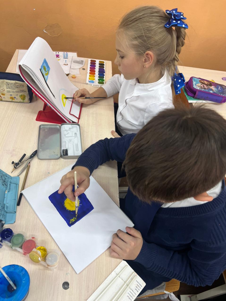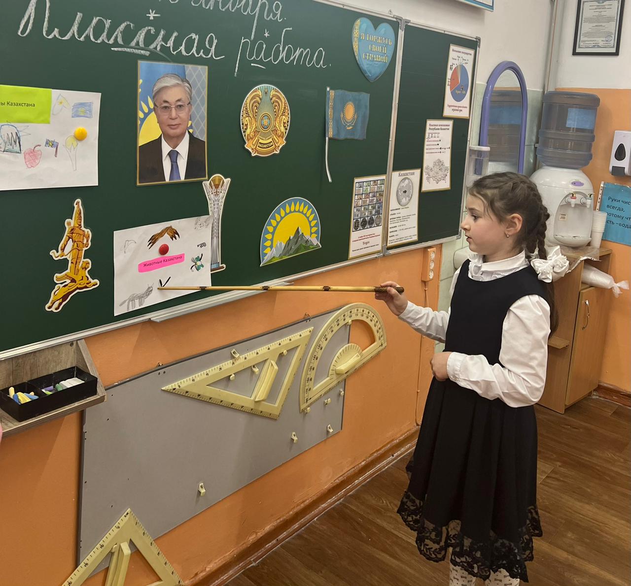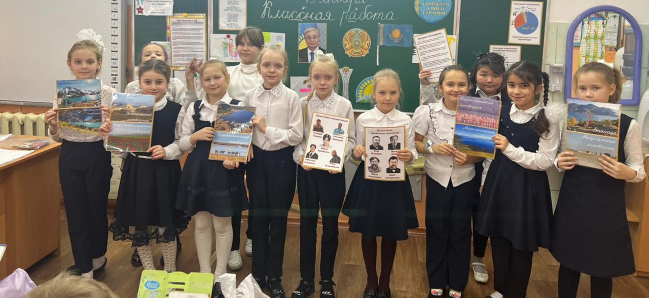 3"Б" сынып оқушылары : әлем туралы білім сабағында. Сабақтың тақырыбы:"Менің елімнің рәміздері"./Ученики 3"Б" класса на уроке: познание мира. Тема урока: "Символы моей страны".