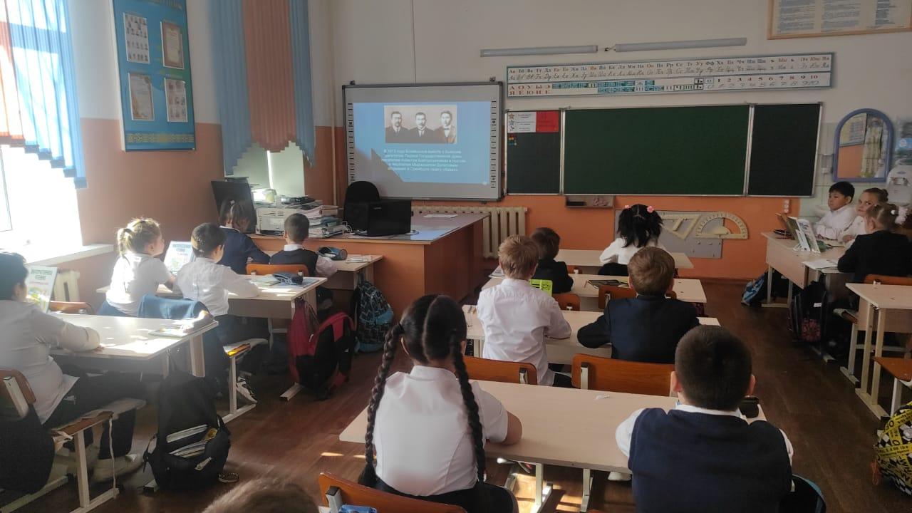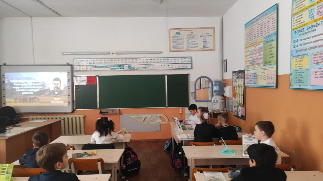 2"В"сыныбының сынып сағаты « Ахмет Байтұрсыновтың 150 жылдығы »тақырыбында. / Классный час 2”В” класса на тему: “150 летие Ахмета Байтурсынова”.