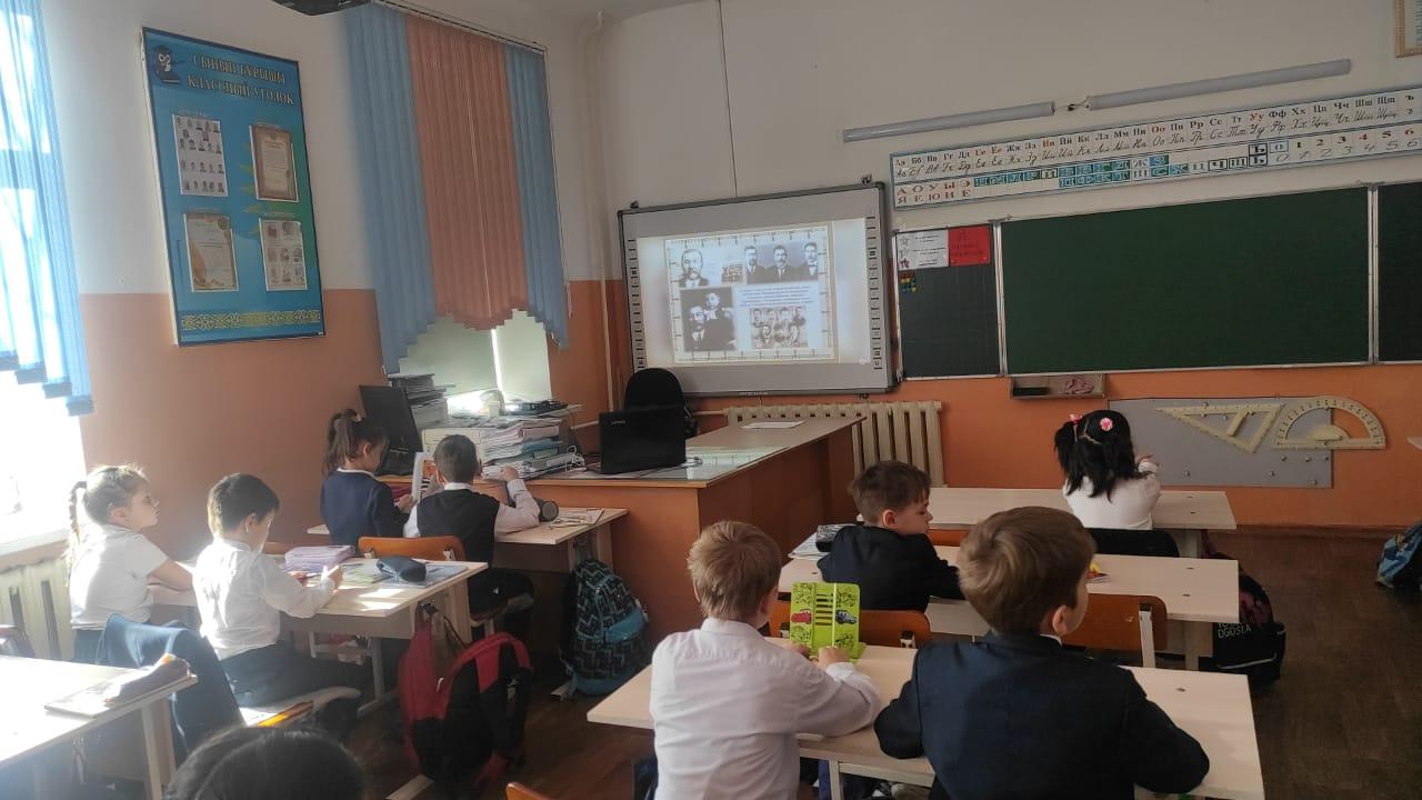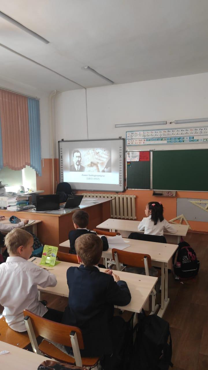 Школа №11 г. Алматы » Ақпарат » 2"В"сыныбының сынып сағаты « Ахмет Байтұрсыновтың 150 жылдығы »тақырыбында. / Классный час 2”В” класса на тему: “150 летие Ахмета Байтурсынова”.