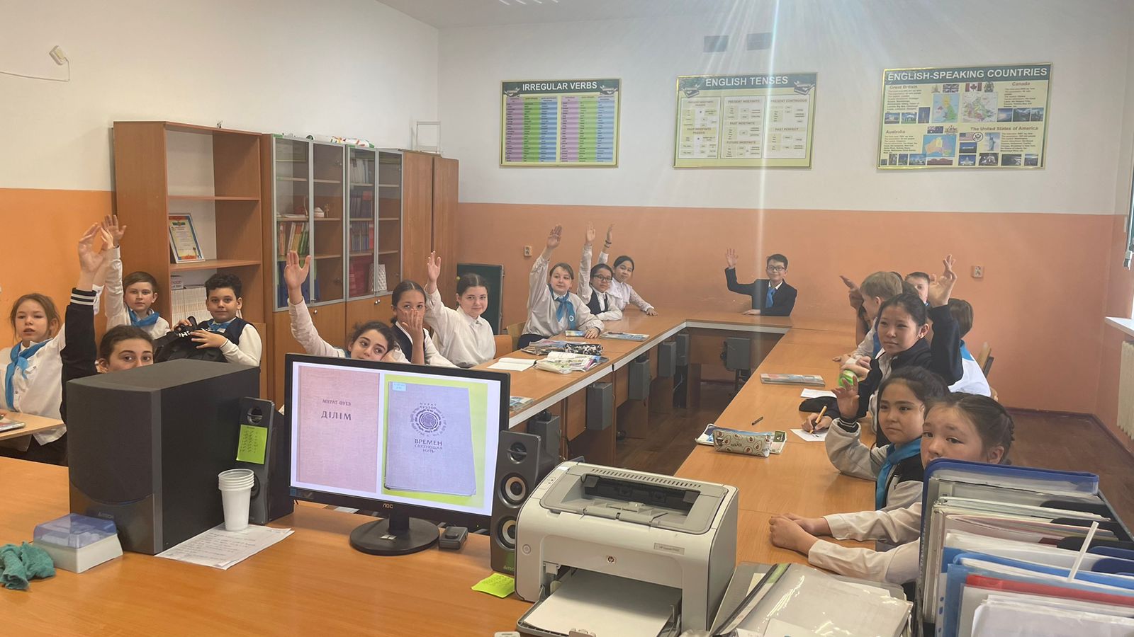 Сыну великого казахского писателя, драматурга Мухтара Ауэзова, общественному деятелю, культурологу Мурату Ауезову исполнилось 80 лет. В честь этого 5А классе прошел классный час.