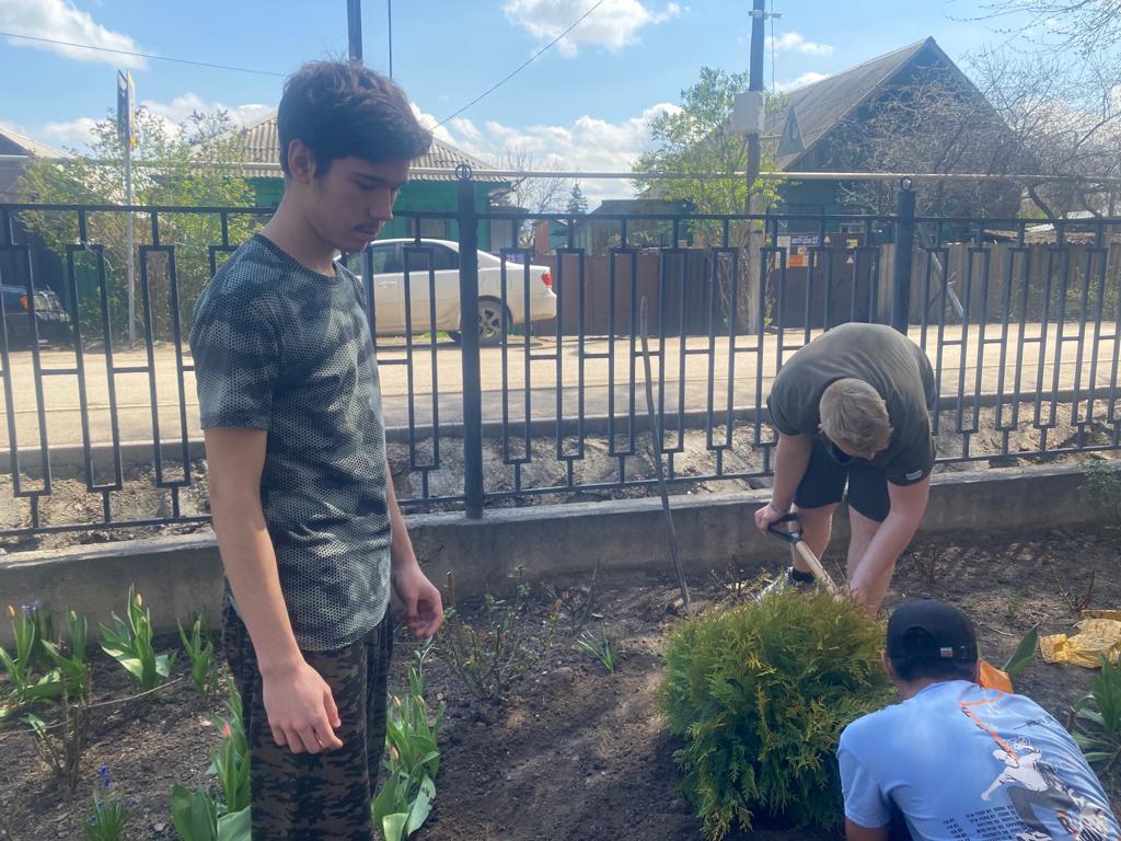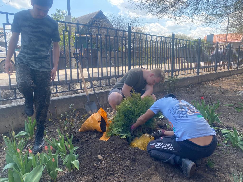 Мектеп оқушыларының адамгершілік, эстетикалық және еңбек тәрбиесін насихаттау мақсатында 11 ЖББМ 11 "А" сынып оқушылары және сынып жетекшісі Г. Е. Кенжебек алғашқылардың бірі болып сыныпқа бекітілген мектеп аумағын абаттандыруға кірісті./ С целью содействия нравственному, эстетическому и трудовому воспитанию школьников, в ОШ 11 учащиеся 11 "А" класса под руководством классного руководителя Кенжебек Г.Е. одни из первых начали благоустраивать прикреплённую за классом прикольную территорию.
