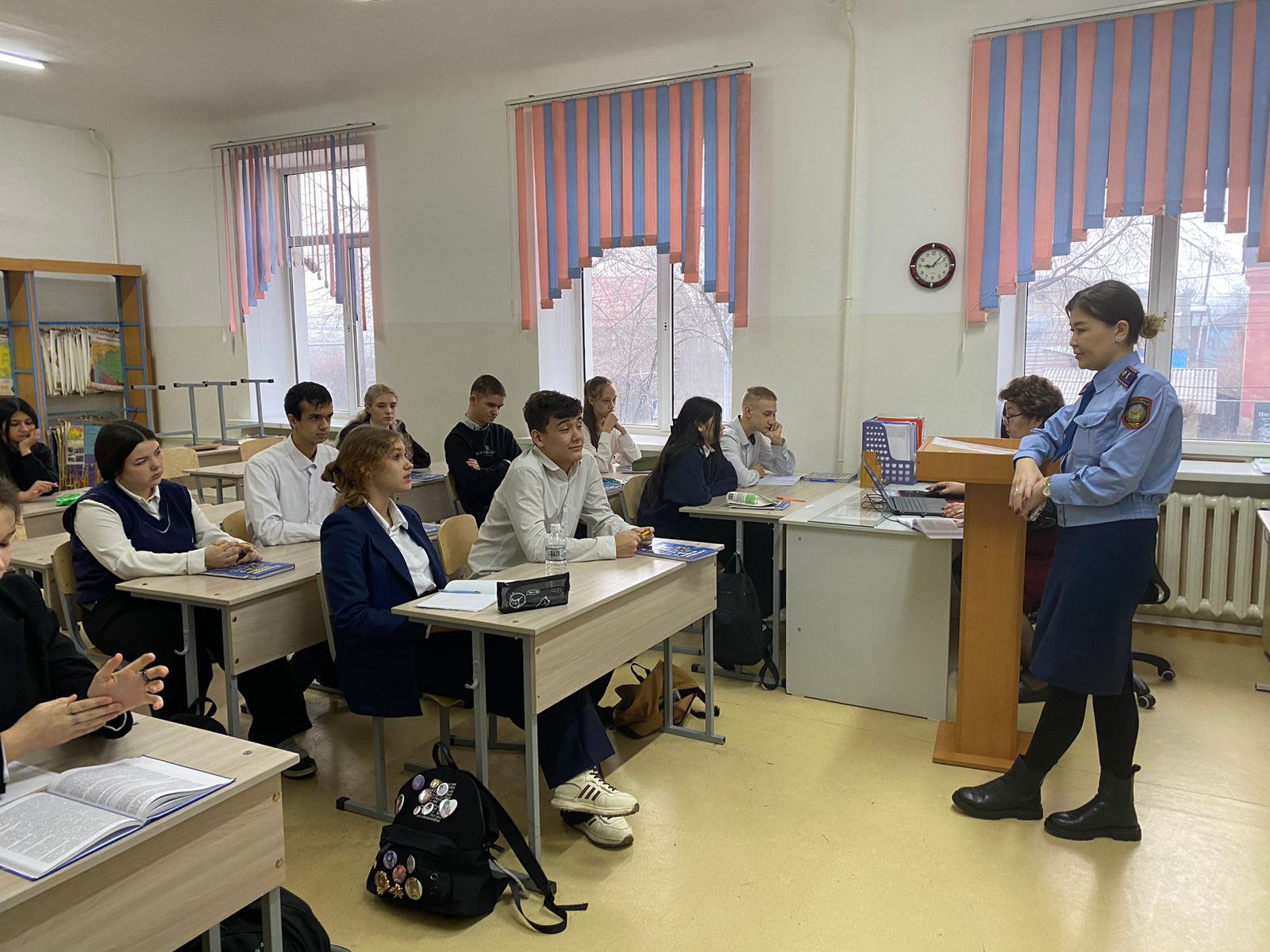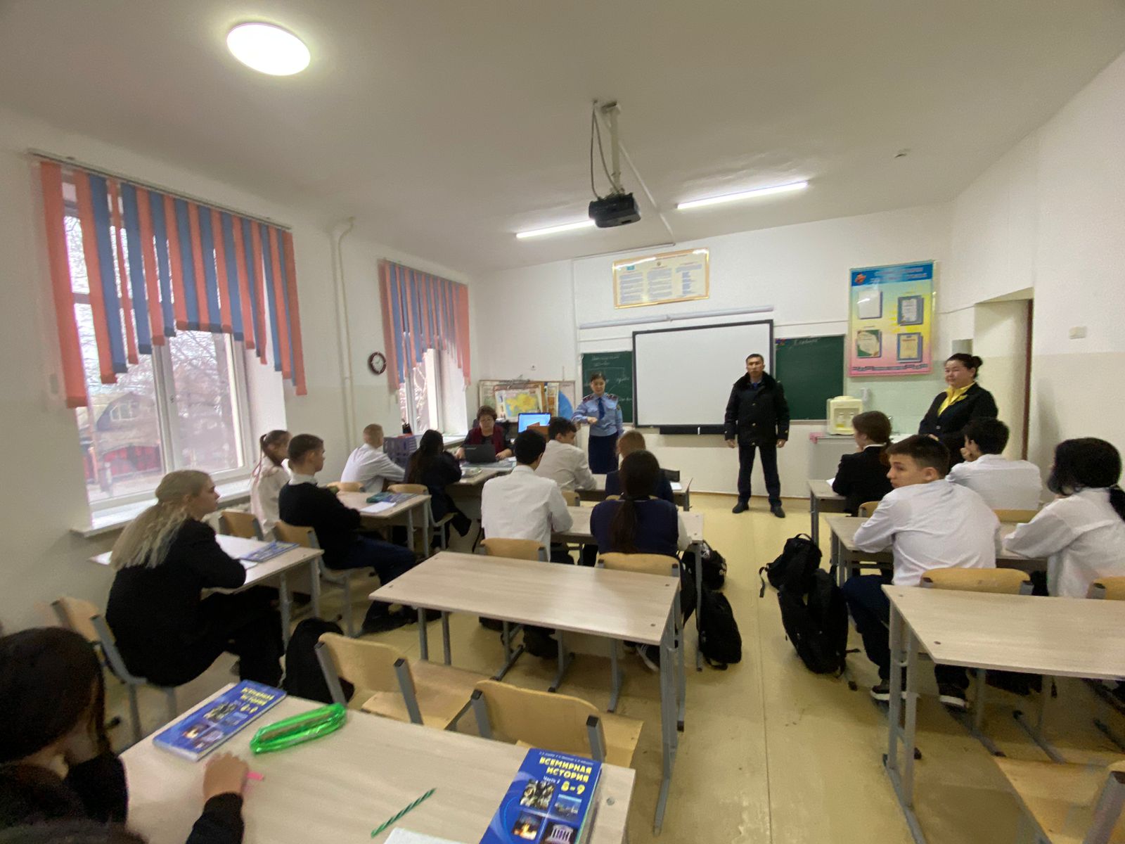 В разговоре с обучающимися инспектор затронула следующие темы: «Административные правонарушения и преступления среди несовершеннолетних», «Профилактика нецензурной лексики среди подростков», «Буллинг среди подростков и его последствия», «Здоровый образ жизни, безопасность».