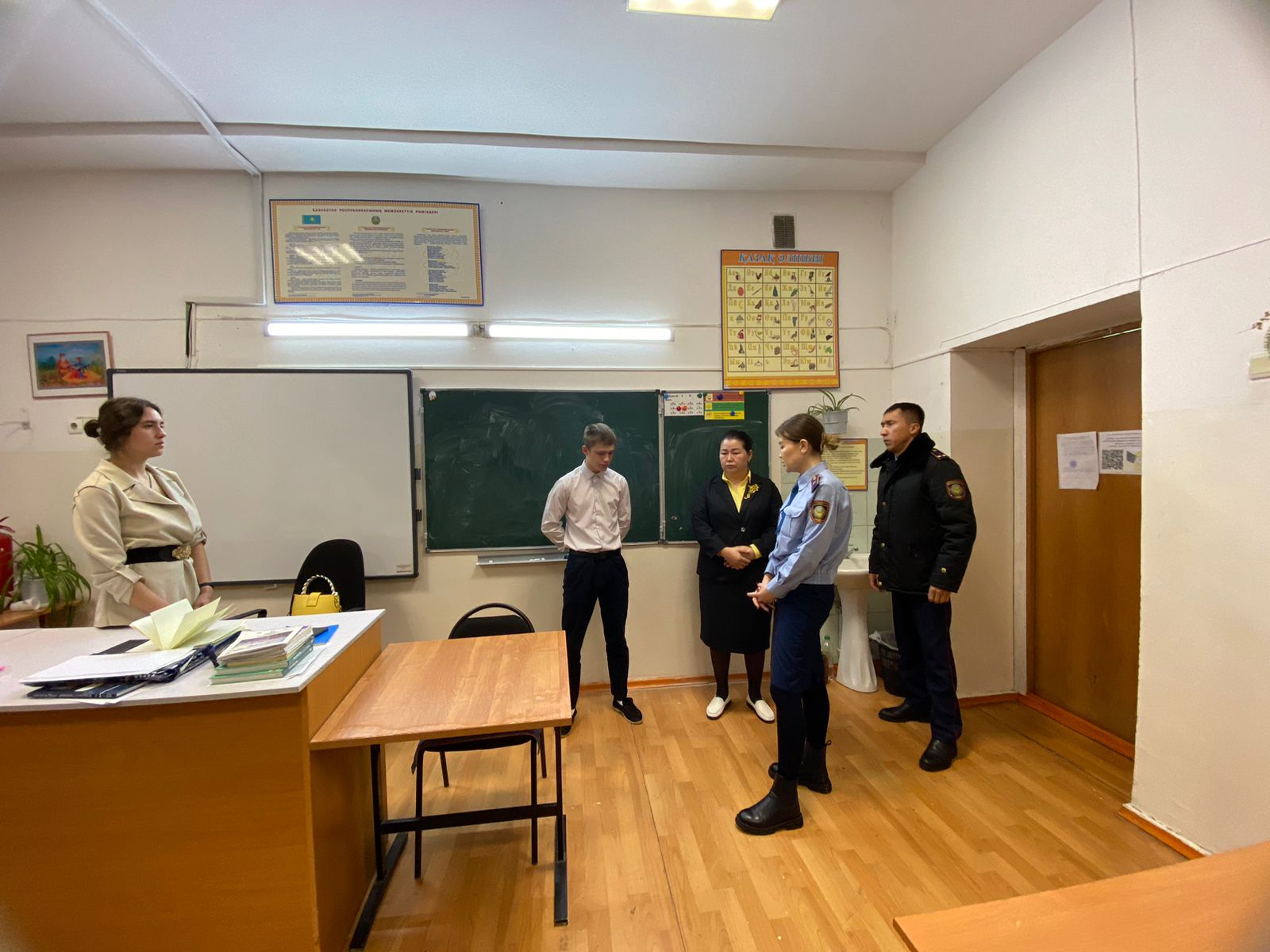 Студенттермен әңгімелесу барысында инспектор «Кәмелетке толмағандар арасындағы әкімшілік құқық бұзушылықтар мен қылмыстар», «Жасөспірімдер арасындағы әдепсіз сөздердің алдын алу», «Жасөспірімдер арасындағы бұзақылық және оның зардаптары», «Салауатты өмір салты, қауіпсіздік» тақырыптарына тоқталды.