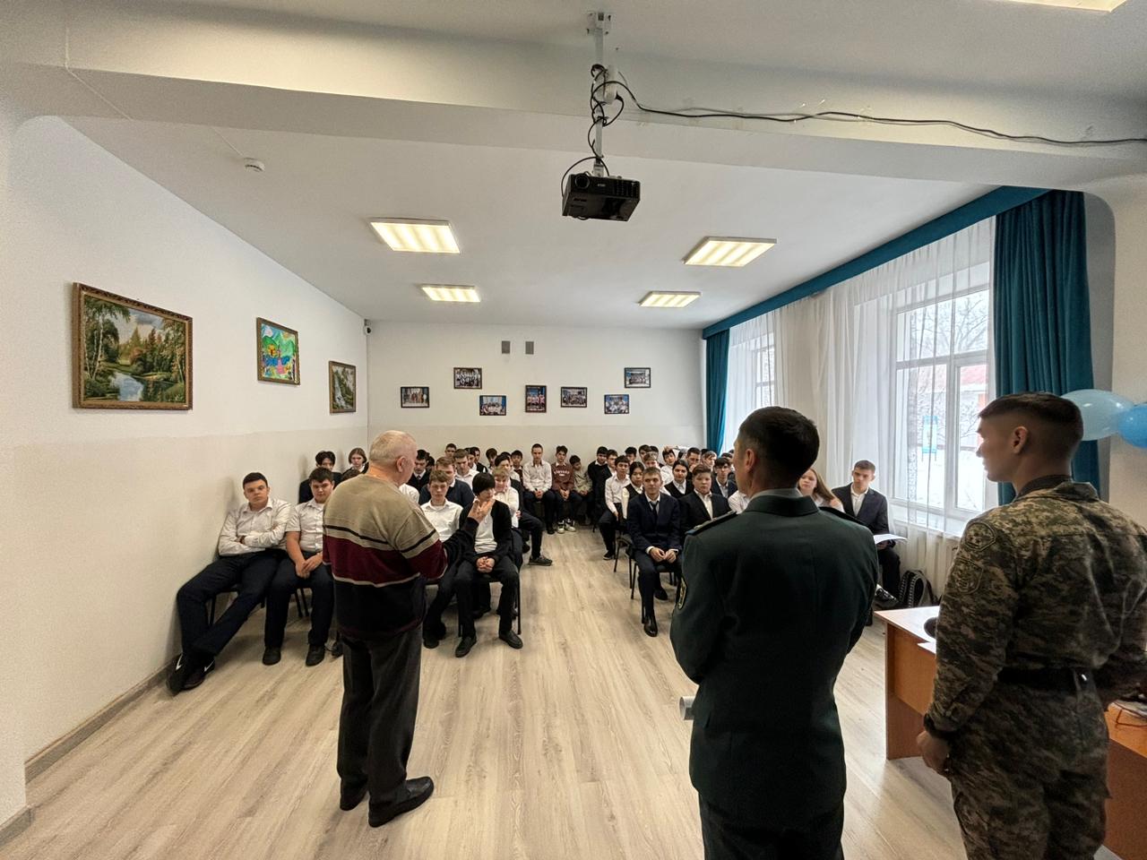 Сегодня представители войсковой части 611993 провели с учащимися 8,9 классов урок мужества на тему: "Вооруженные силы РК на страже суверенитета и территориальной целлостности РК"