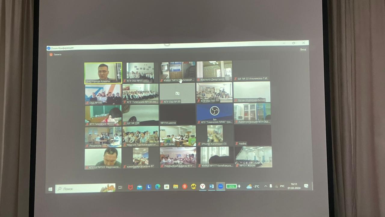 Мектебіміздің оқушыларымен ТЖЖ департаменті қызметкерлері «Білім беру нысандарында сейсмикалық оқытуды ұйымдастыру және жүргізу әдістемесі» тақырыбында zoom платформасы арқылы сабақ өткізді.