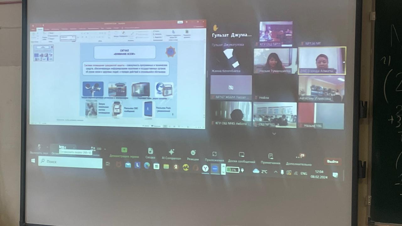 Мектебіміздің оқушыларымен ТЖЖ департаменті қызметкерлері «Білім беру нысандарында сейсмикалық оқытуды ұйымдастыру және жүргізу әдістемесі» тақырыбында zoom платформасы арқылы сабақ өткізді.