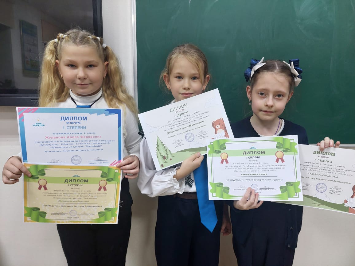 15 қараша 2024 0 1 2 3 4 5 Біздің жетістіктеріміз / Наши достижения 2 «В» сынып оқушылары Республикалық «Зерде» олимпиадасына қатысып, 1-дәрежелі дипломдарға қол жеткізді.Ученики 2"В" класса заняли 1 место в Республиканской олимпиаде "Зерде".Кл. Рук: Негуляева Виктория Александровна! Осы беттің QR-коды:QR-код этой страницы:
