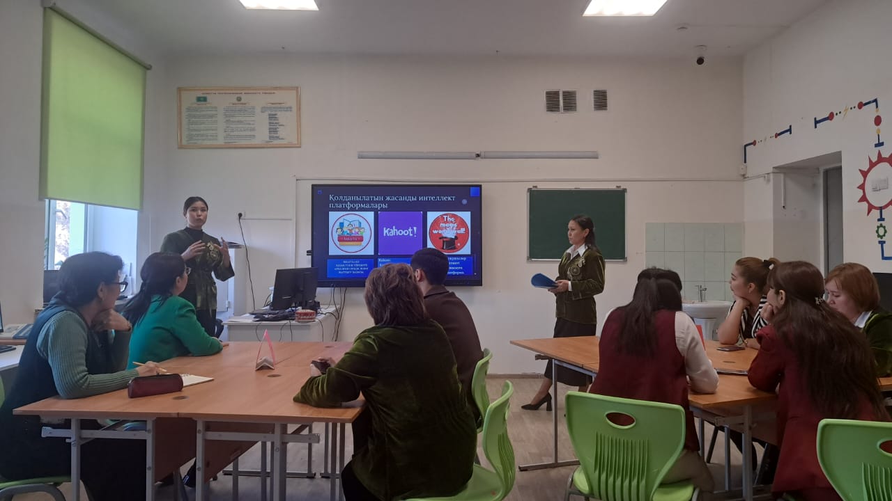 Бүгін қазақ тілі мен әдебиеті әдістемелік бірлестігі мұғалімдері "ТАБЫС ҚАНАТЫ" жобасының аясында "Қазақ тілі мен әдебиет сабағында жасанды интеллект платформасын қолдану" тақырыбында коучинг өткізді.