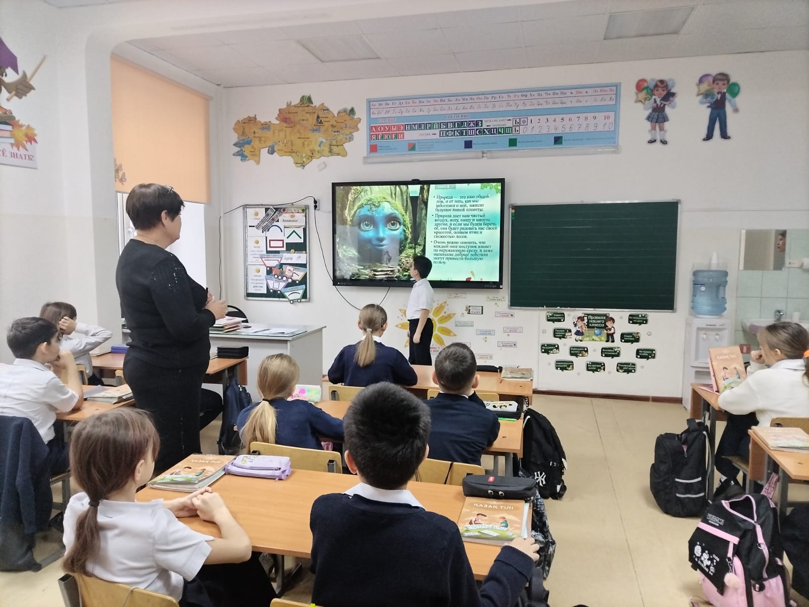 В соответствии с планом программы "Біртұтас тәрбие" среди учащихся 1-11 классов был проведен воспитательный час на тему "Мы заботимся о природе".