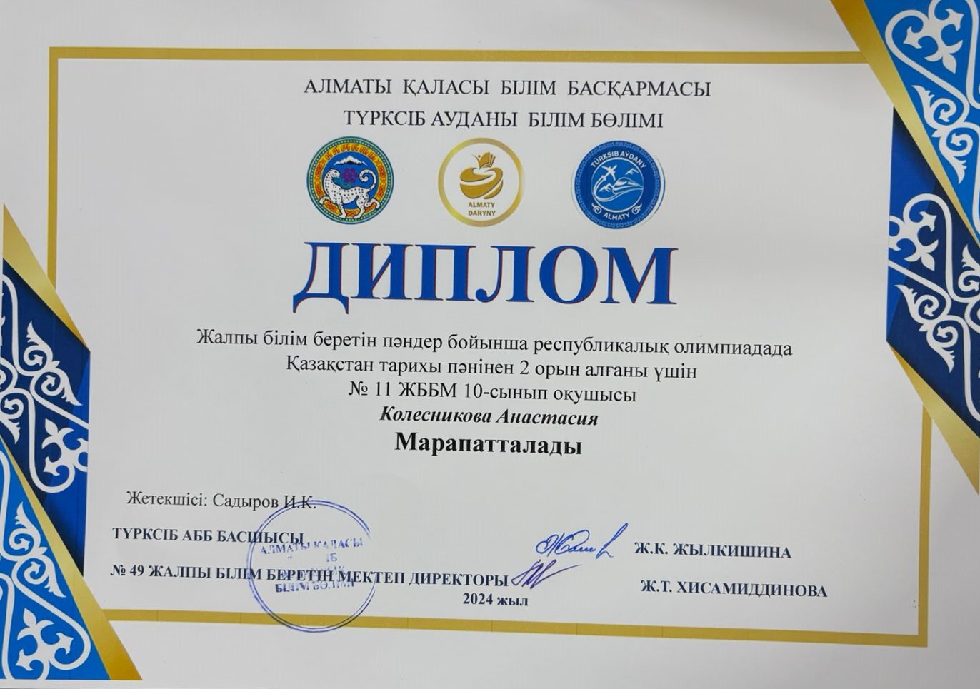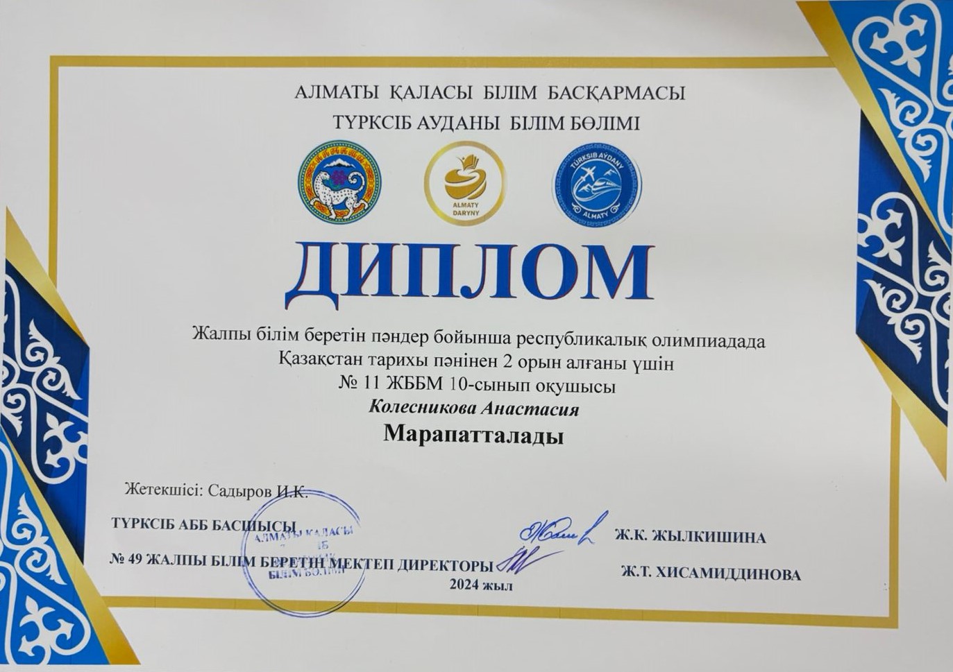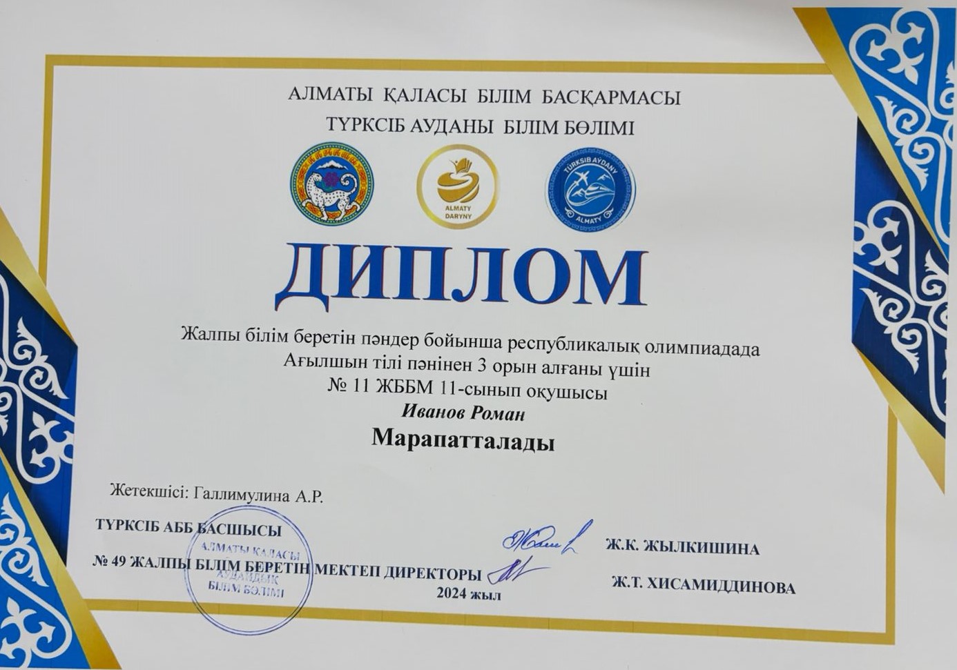 Біздің мектептің оқушылары жалпы білім беретін пәндер бойынша республикалық олимпиадаға қатысып, ерекше белсенділік танытты! 💪