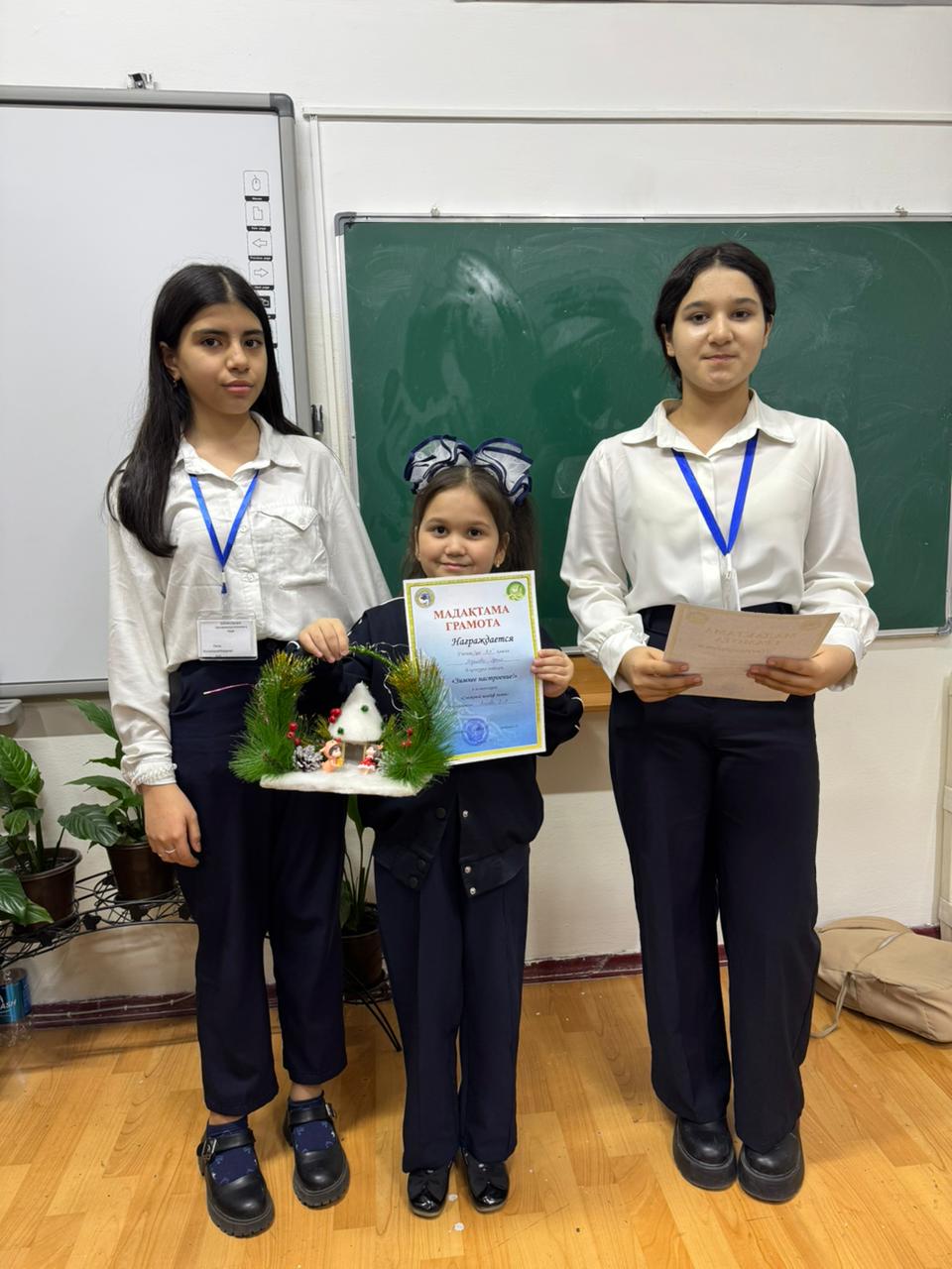 Бүгін оқушыларымызға жаңа жыл қарсаңында жасаған қолөнер бұйымдары үшін номинация бойынша мақтау грамоталарын табыстадық. Марапаттарды Өзін-өзі басқару ұйымының президенті табыстады, ал түстен кейін екінші ауысымда президенттің орынбасары табыстауды жалғастырды. Шығармашылықтарыңыз бен белсенділіктеріңізге алғысымызды білдіреміз!