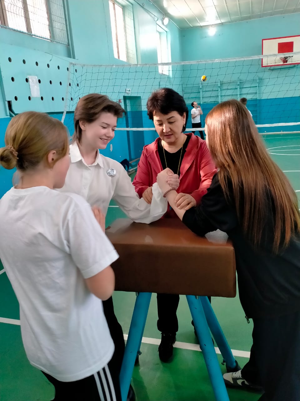 Перемены в нашей школе проводится организованно, весело. Дети с удовольствием приходят в спортзал и под руководством учителей физической культуры проводятся состязания по национальным играм. Сегодня провели состязания по армрестлингу. Этот вид спорта развивает не только силу рук, но и задействует практически все группы мышц. Армрестлинг тренирует выносливость, гибкость, координацию движений и скорость реакции. Он учит стратегически мыслить, контролировать эмоции и воспитывает бойцовский дух.