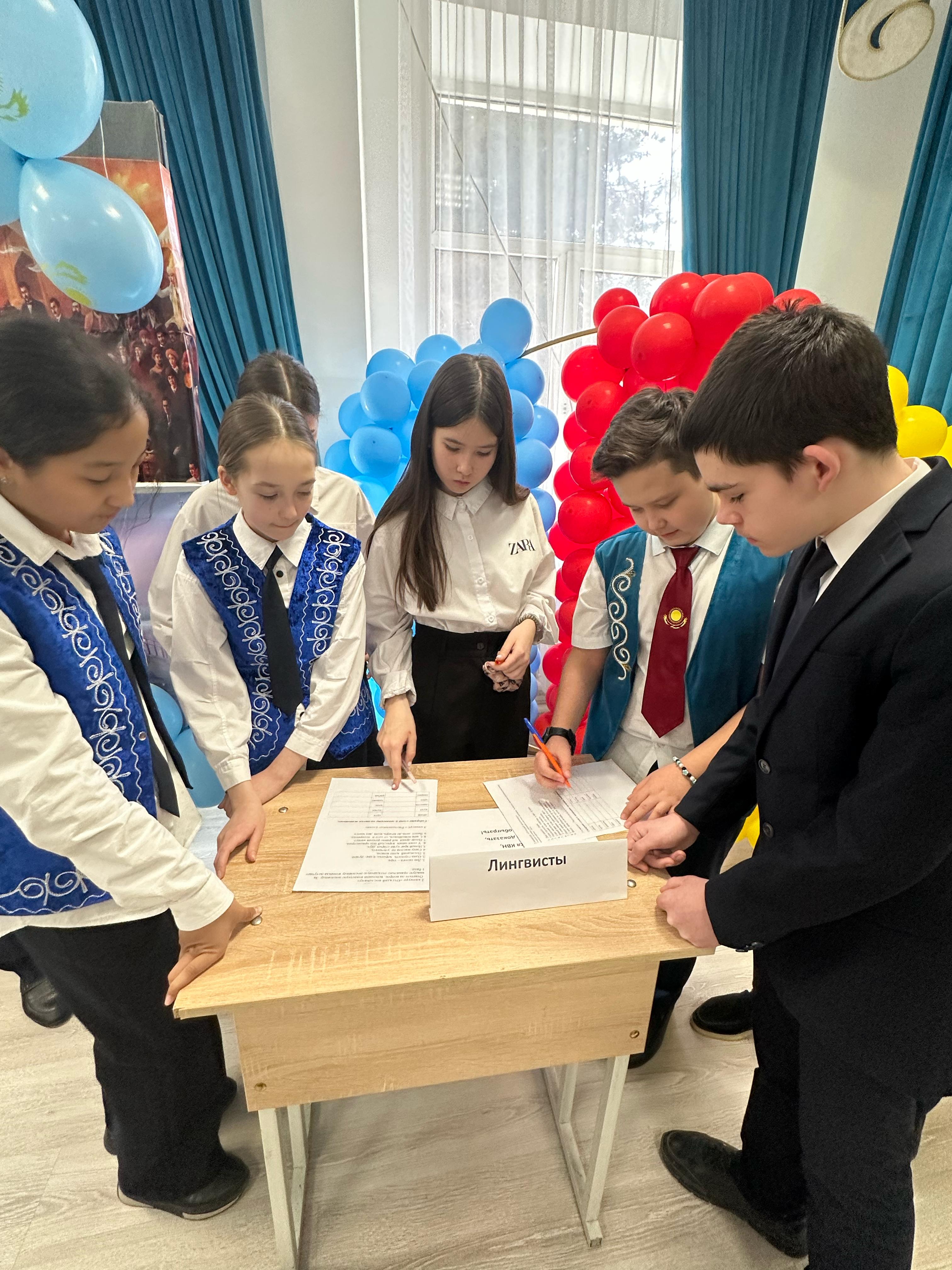 Шараның соңында қатысушылар ребустарды шешіп, логикалық тапсырмалар орындады. Оқушылар белсенділік танытып, шығармашылық және тілдік қабілеттерін көрсетті.