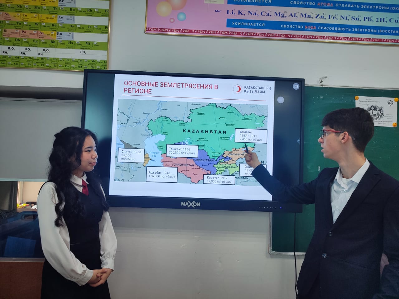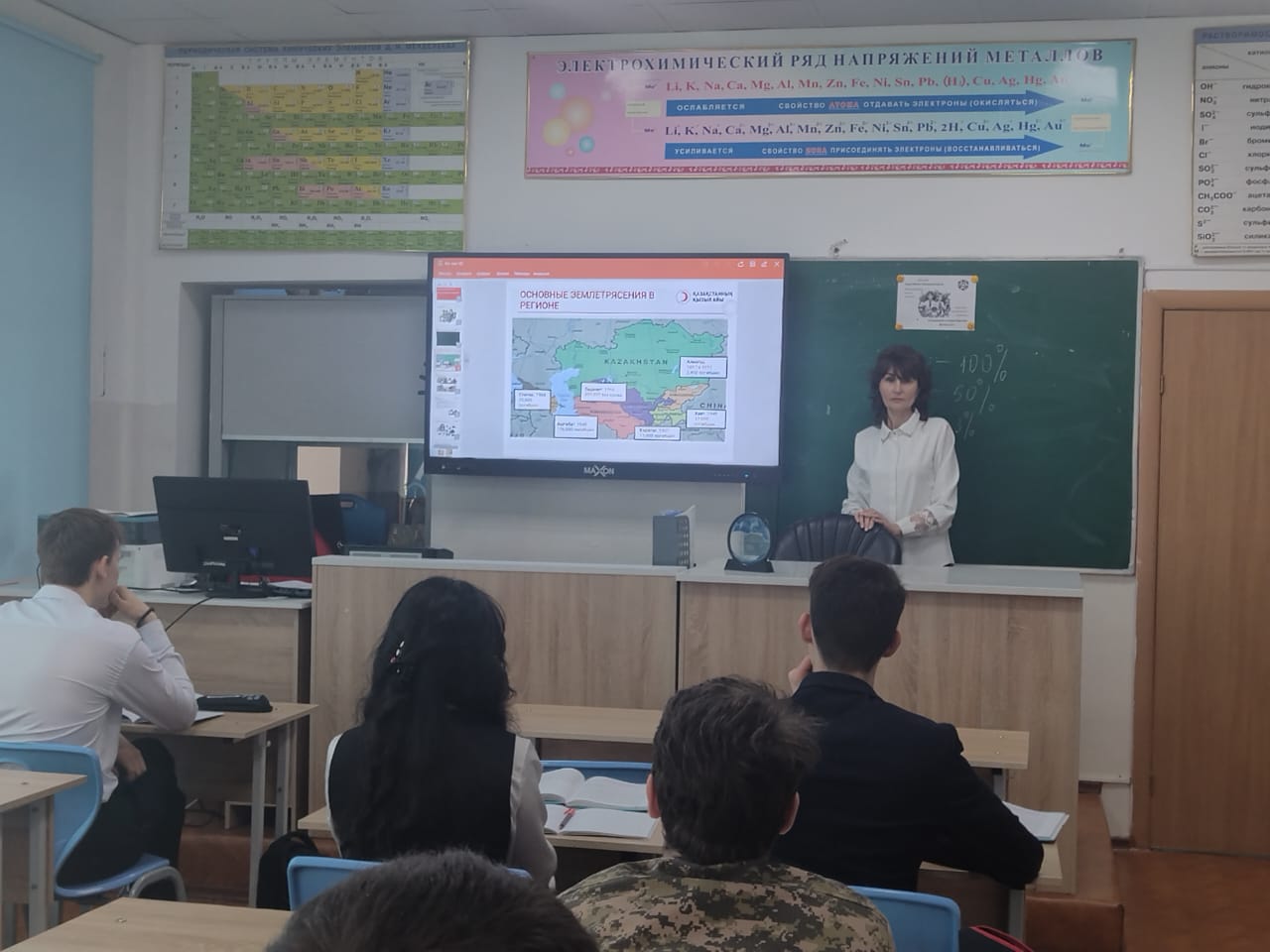 В нашей школе в рамках программы “Көмек” прошли классные часы для учащихся 5-11 классов на тему “Землетрясение”. Ученикам объяснили порядок действий и меры безопасности в чрезвычайных ситуациях.
