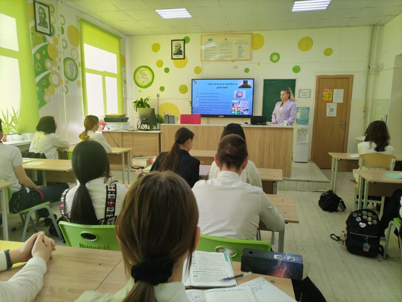 Учащиеся 10-11 классов КГУ Ош Nº11 приняли активное участие в учебных занятиях под девизом "Өскелең ұрпақ арасындағы қауіпсіздік мәдениеті" на тему: "Организация и методика проведения тренировки по аварийным ситуациям на объектах образования" с участием