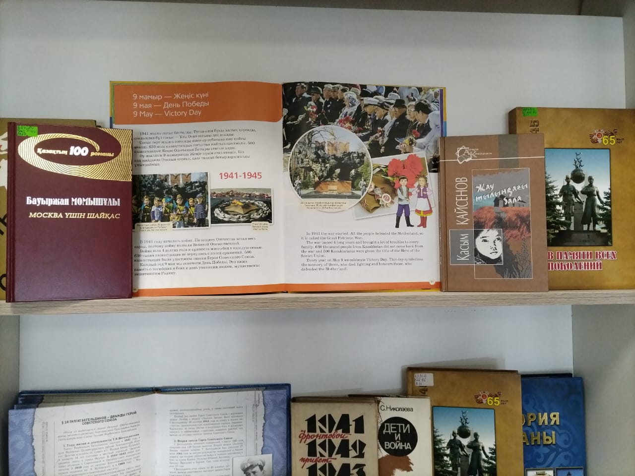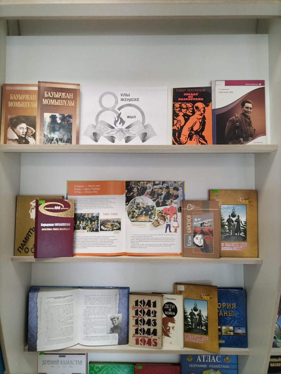 Мектебімізде “Ұлы Жеңіске – 80 жыл” толуына орай кітап көрмесі өткізілді. Көрмеде соғыс жылдарындағы тарихи деректер, батырлар туралы кітаптар мен ардагерлердің естеліктері ұсынылды. Оқушылар Ұлы Отан соғысының маңыздылығы туралы тың ақпараттармен танысты.
