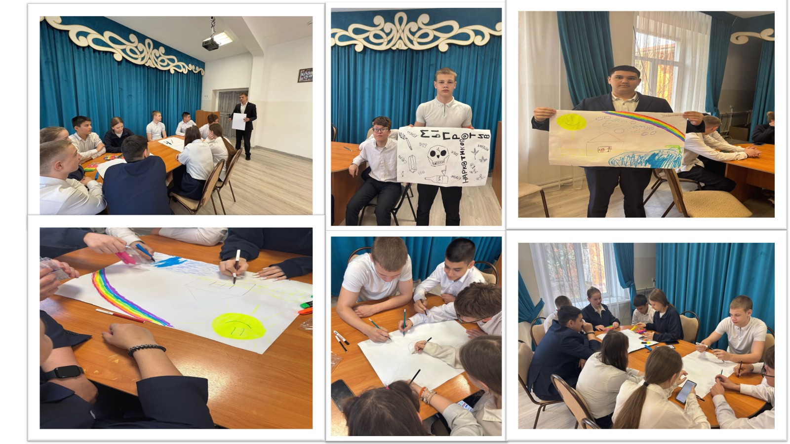 Ребята проявили активность — работали в командах, создавали собственные плакаты, отражающие вред наркотиков. Через творчество они выразили своё отношение к этой проблеме. Каждая работа — это отражение стремления подростков к здоровому образу жизни.