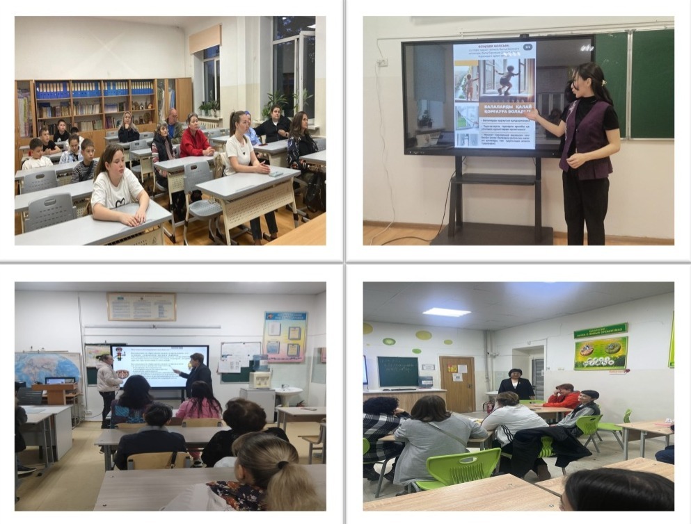 Бүгін мектебімізде “Балалардың қауіпсіздігі – басты назарда!” тақырыбында ата-аналар жиналысы өтті. Жиналыс барысында балалардың терезеден құлау, жол-көлік оқиғасына түсу, суға бату сияқты қауіптердің алдын алу жолдары қарастырылды. Ата-аналармен бірлесе отырып, баланың қауіпсіз ортасын қамтамасыз ету – ортақ міндет екені айтылды.
