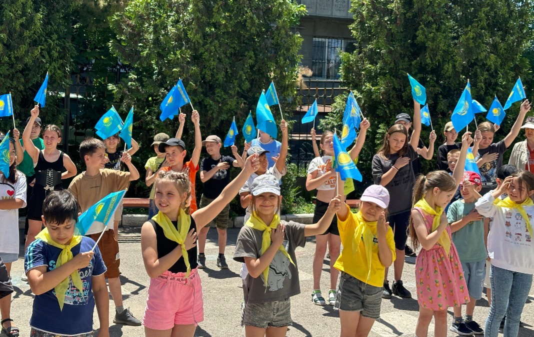 Бүгін лагерьде патриоттық рухты оятатын маңызды сәт — Мемлекеттік Гимнді орындау және Туды көтеру рәсімі өтті. Балалар елімізге деген құрметін көрсетіп, мемлекеттік рәміздерге тағзым етті. Бұл шара – елжандылықтың жарқын көрінісі.