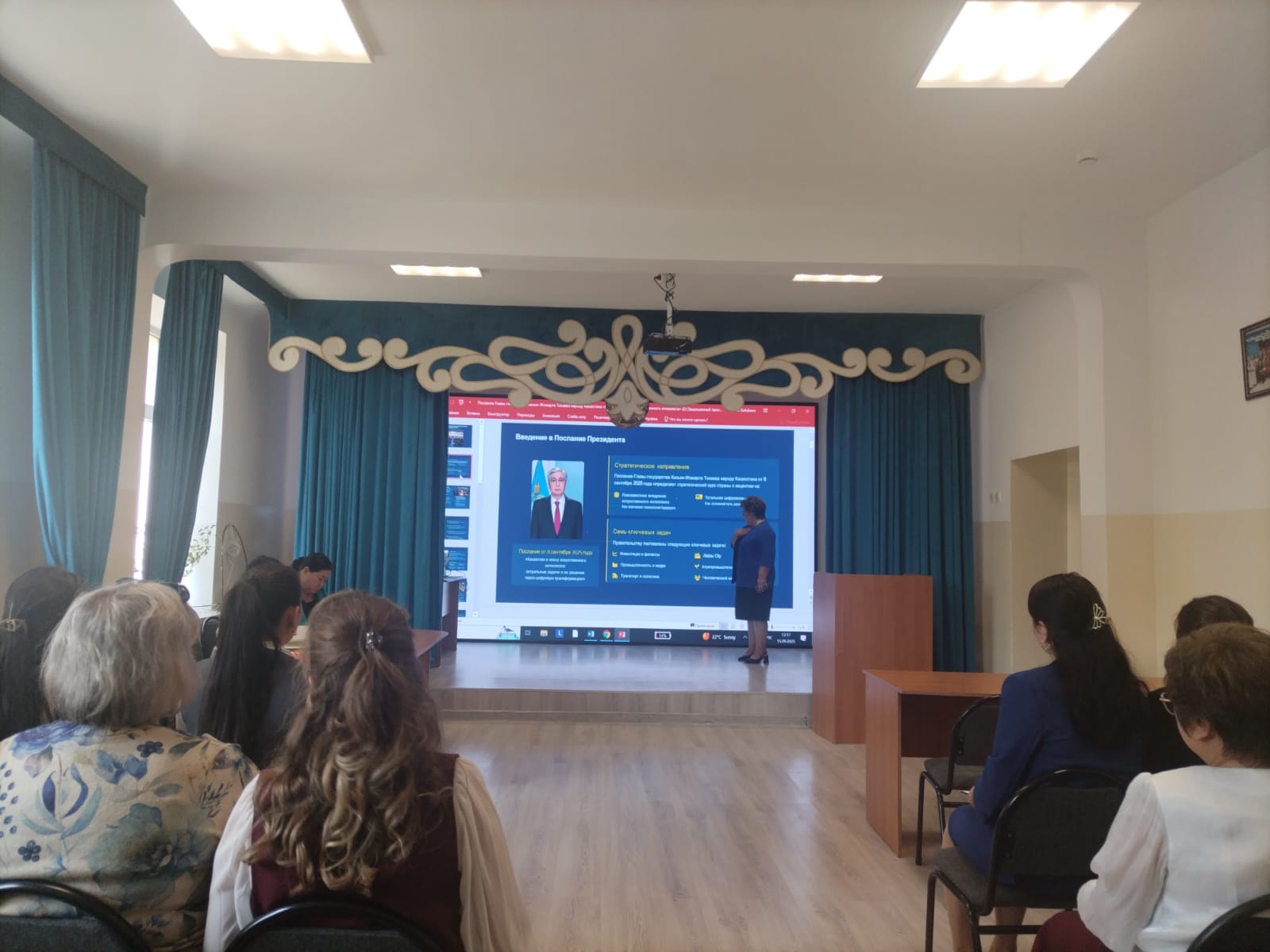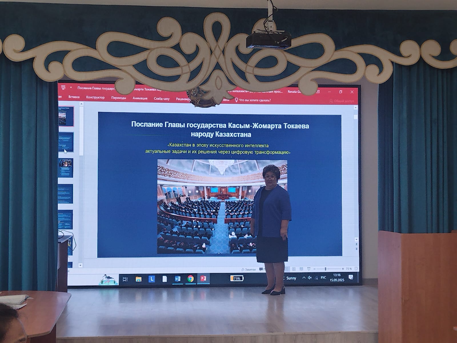 Мектеп ұжымы Жолдауды мұқият тыңдап, онда айтылған мемлекеттік саясаттың негізгі бағыттарымен және алға қойылған міндеттермен танысты. Әсіресе, цифрландыру, жасанды интеллектіні енгізу, білім сапасын арттыру және технологиялық дамыған мемлекетті құруда жастардың рөлі туралы мәселелерге баса назар аударылды.