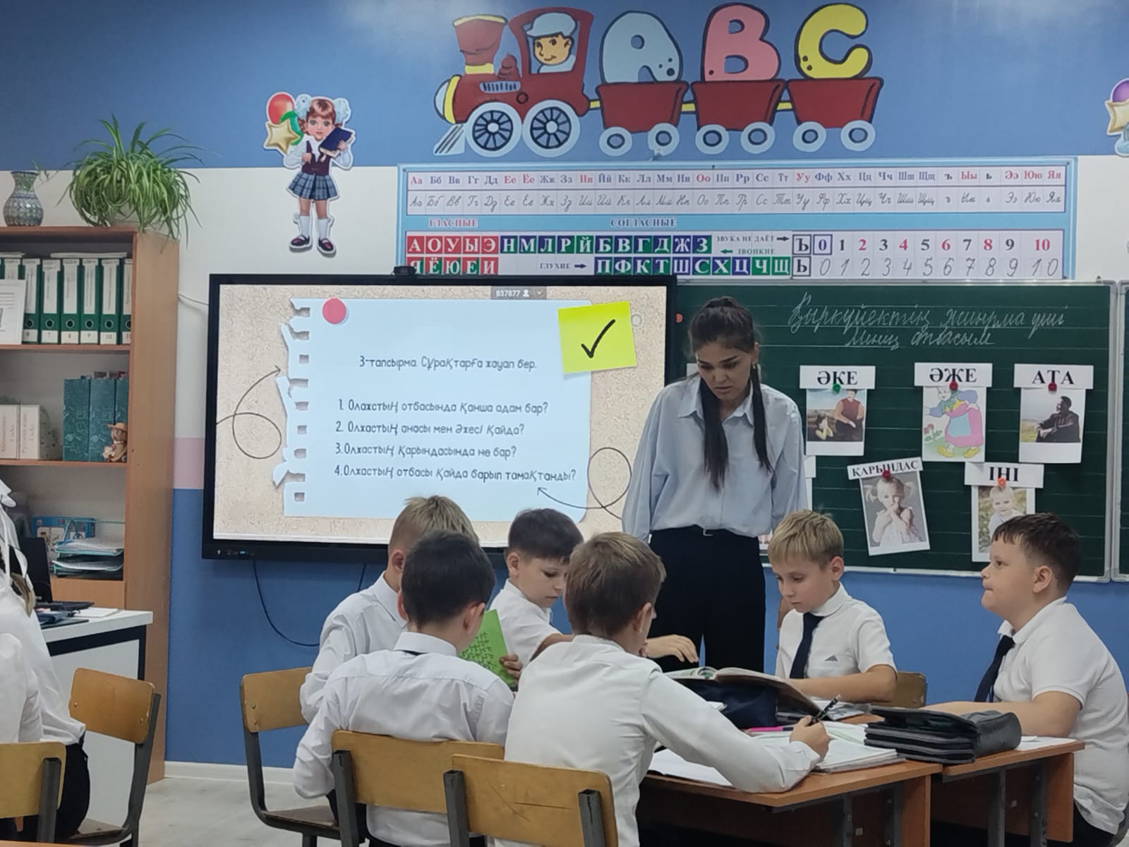 В рамках недели казахского языка и литературы под девизом "Мемлекеттік тіл – менің тілім" 23 сентября был проведён открытый урок в 4 "В" классе на тему "Моя семья".
