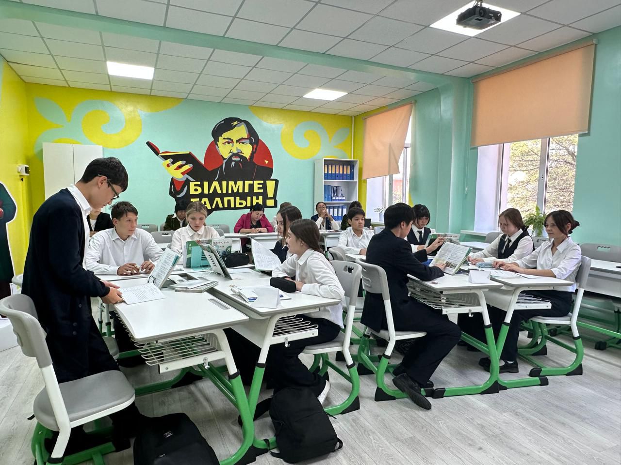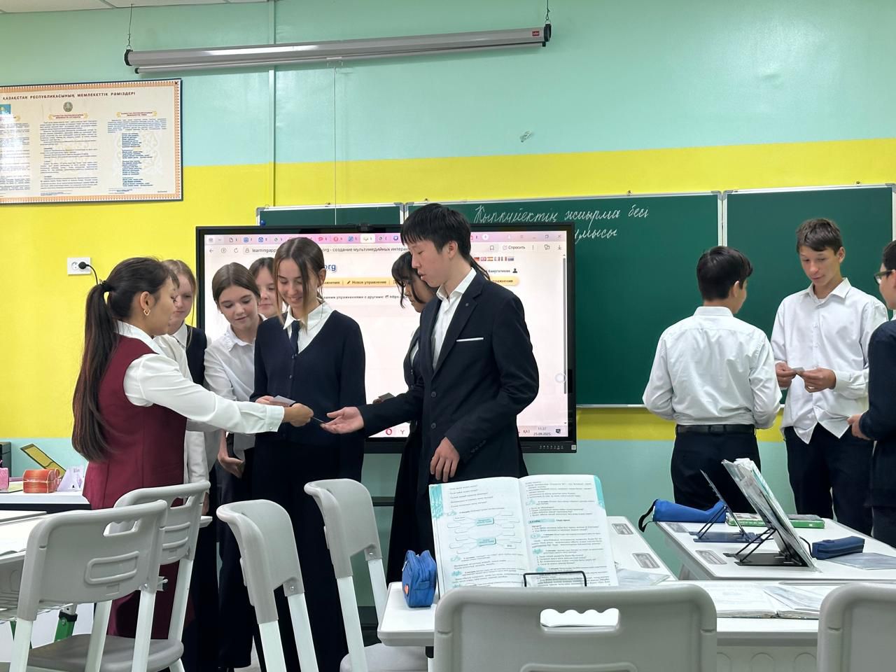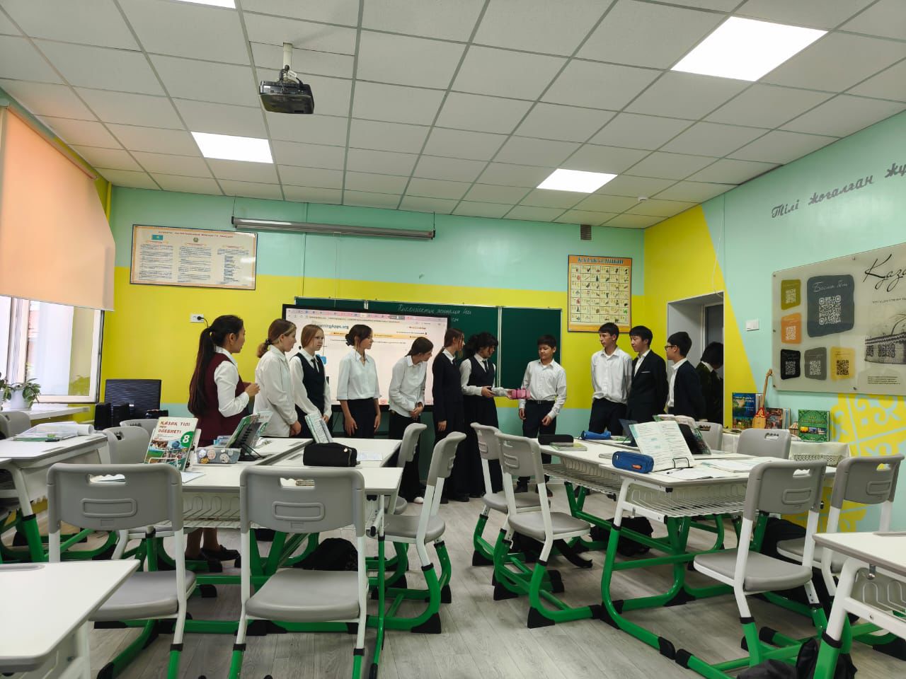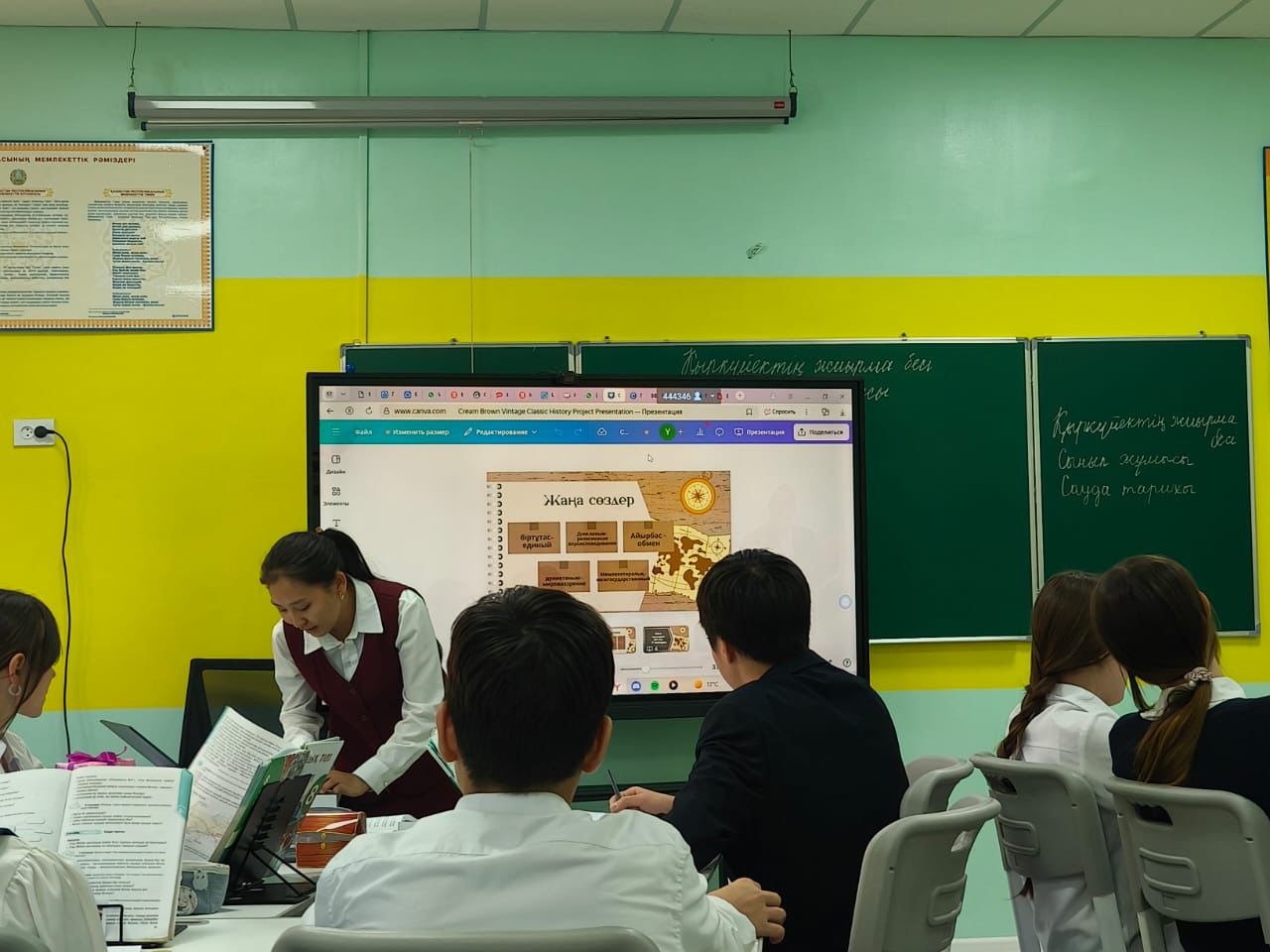 Қазақ тілі мен әдебиеті пәні апталығы аясында 8 “В” сынып оқушыларымен қазақ тілі мен әдебиеті пәні мұғалімі Каиргалиева Е.Н. «Сауда тарихы» тақырыбында ашық сабақ өткізді. Сабақ барысында заманауи әдіс-тәсілдер мен жасанды интеллект құралдары қолданылып, оқушылар тақырып бойынша топтық жұмыс жүргізді. Оқушылар белсенділік танытып, өз ой-пікірлерін ортаға салып, шығармашылық қабілеттерін көрсетті.