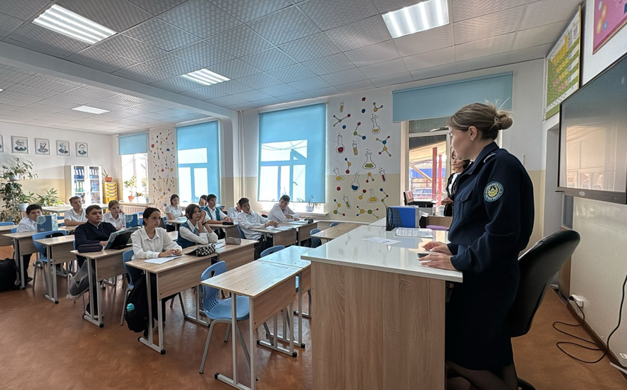 Іс-шара 10-11 сынып оқушыларына арналды. Әңгіме барысында жасөспірімдер арасындағы суицидтік мінез-құлықтың негізгі себептері, оның түрлері, сондай-ақ мұндай жағдайлардың алдын алу жолдары түсіндірілді. Майор Джолдасбекова С.Б. оқушылармен ашық диалог құрып, психологиялық көмек алу маңыздылығын атап өтті.