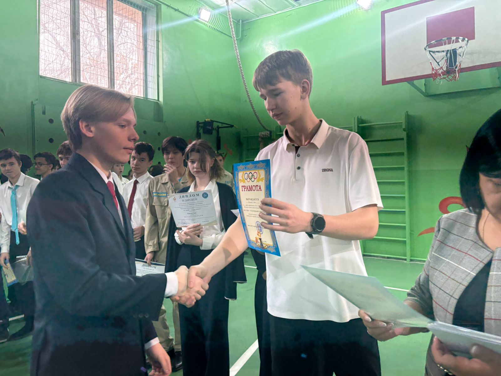 Сегодня в нашей школе прошла традиционная линейка. На мероприятии были награждены ученики, проявившие себя в учёбе, творчестве, спорте и общественной деятельности. Их достижения – результат упорного труда, стремления к успеху и поддержки учителей.