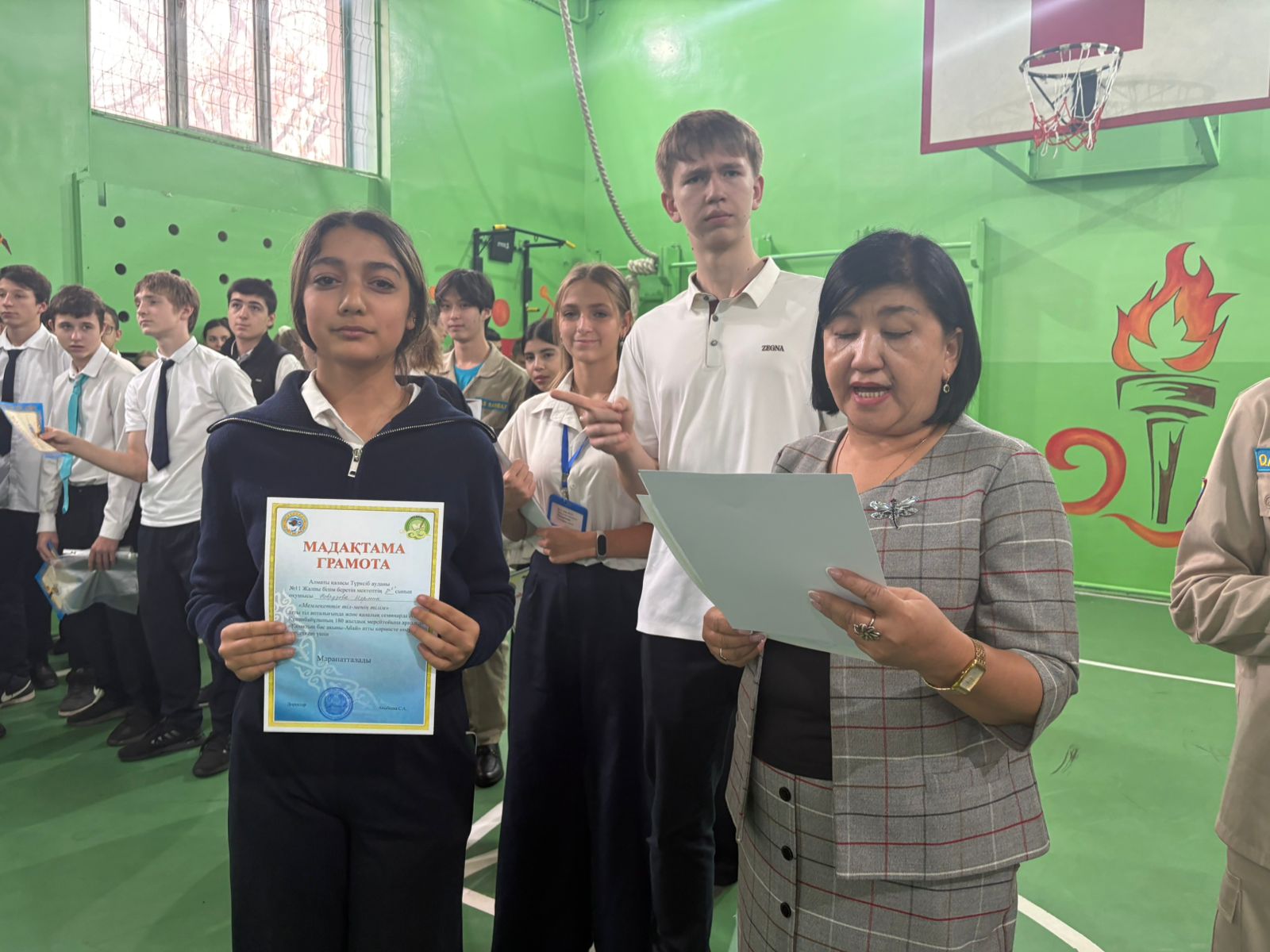 Бүгін мектебімізде 8-11 сыныптар арасында лездеме өтті. Бұл жиында оқу мен өнер, спорт пен қоғамдық жұмыстарда ерекше көзге түскен оқушылар марапатталды. Олардың жетістіктері – қажырлы еңбектің, талпыныстың және ұстаздардың еңбегінің нәтижесі.
