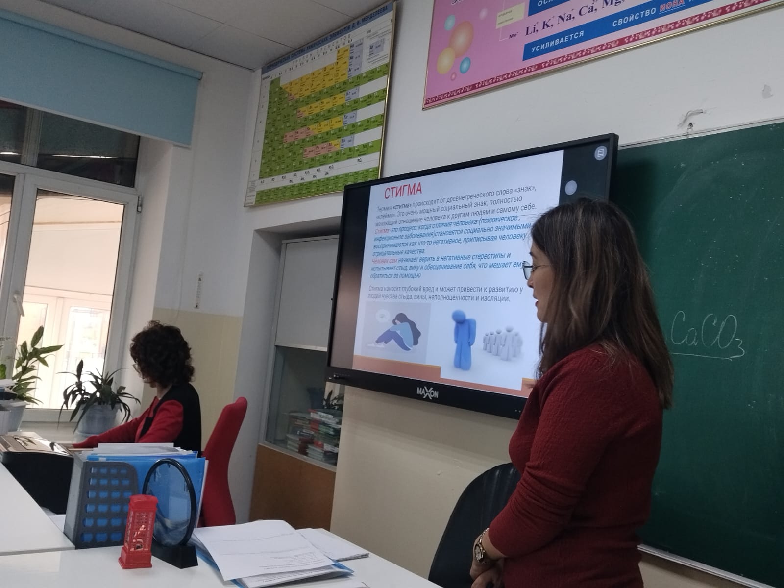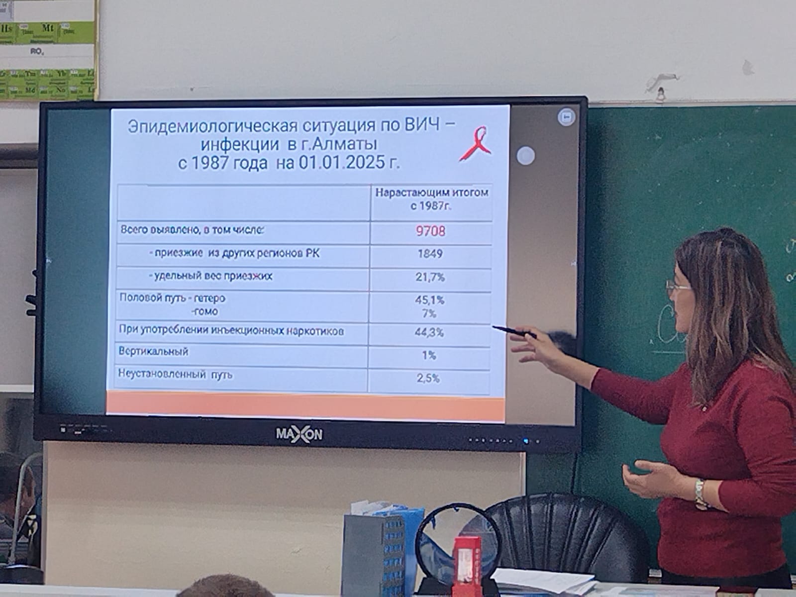 В КГУ «ОШ №11» 09 декабря 2025 года представители Центра по профилактике и борьбе со СПИД г. Алматы провели разъяснительную работу по вопросам профилактики ВИЧ/СПИД среди учащихся 8–9 и 10–11 классов.