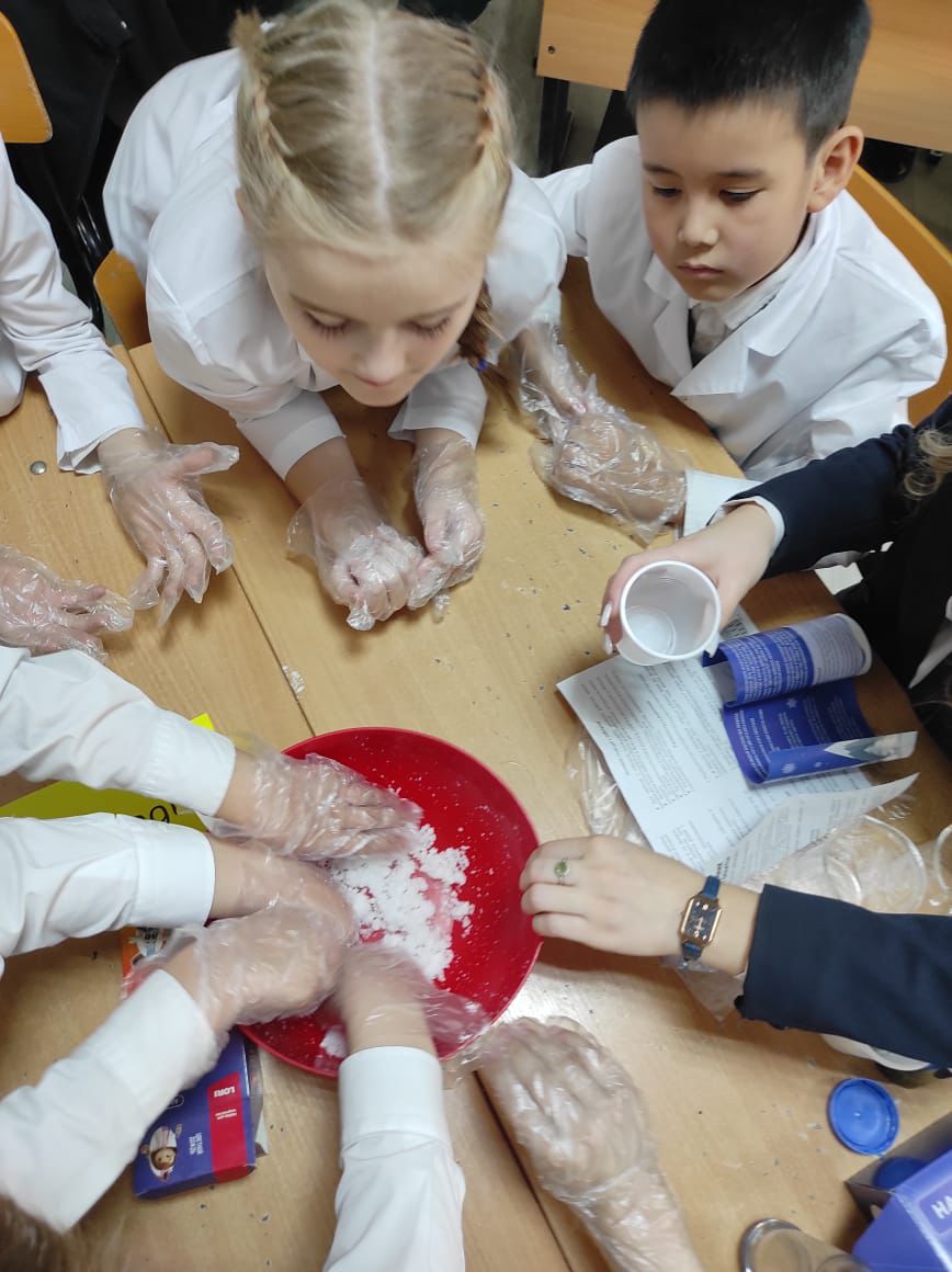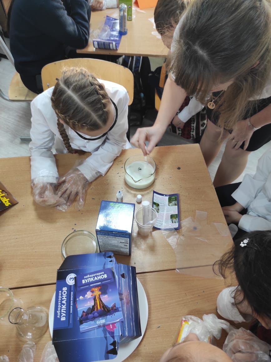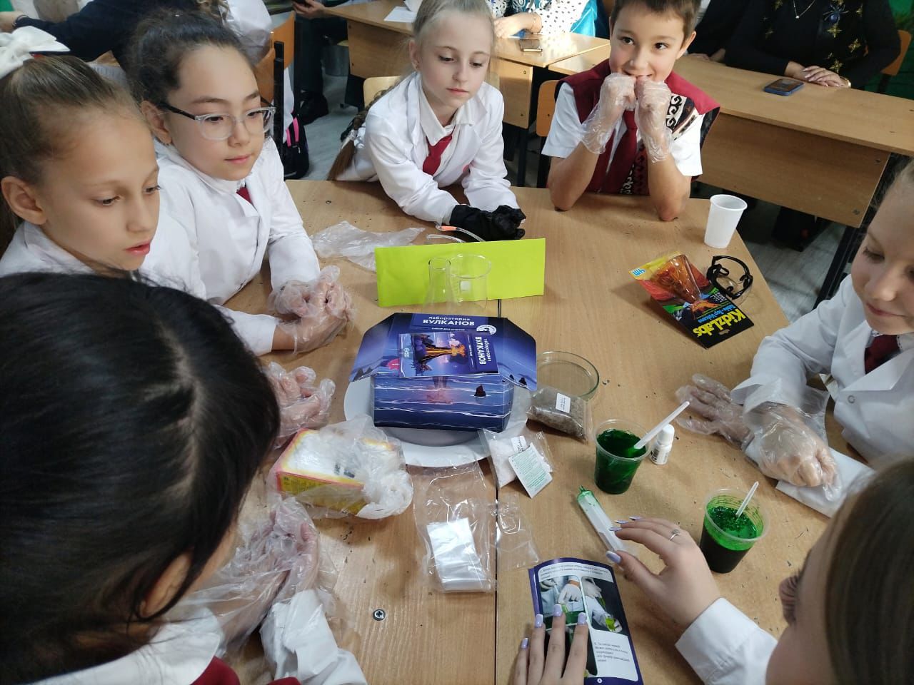 На лабораторном уроке учащиеся знакомились с окружающим миром через практическую деятельность. Ребята самостоятельно выполняли различные практические работы, такие как наблюдение за снегом, капельным дождём, моделирование вулкана и другие виды лабораторных работ. Они рассматривали природные объекты и изображения, определяли их признаки, сравнивали и классифицировали.