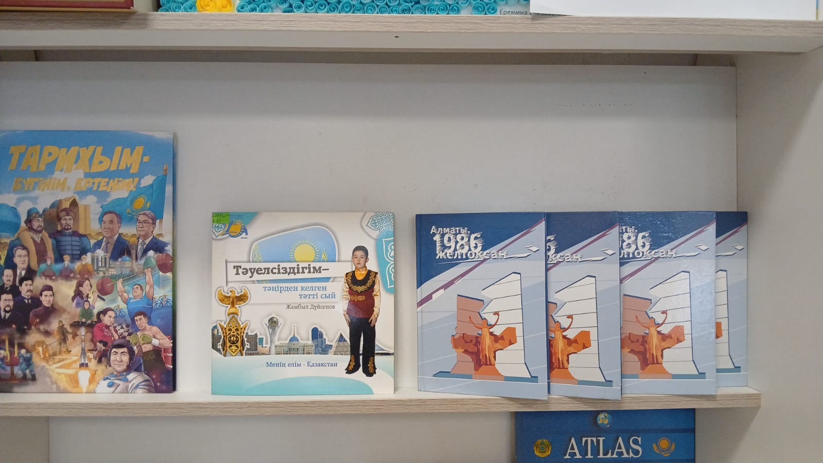 12.12.2025 ж. 16 желтоқса Тәуелсіздік күніне орай "Тәуелсіздік жолында" тақырыбында кітап көрмесі ұйымдастырылды.