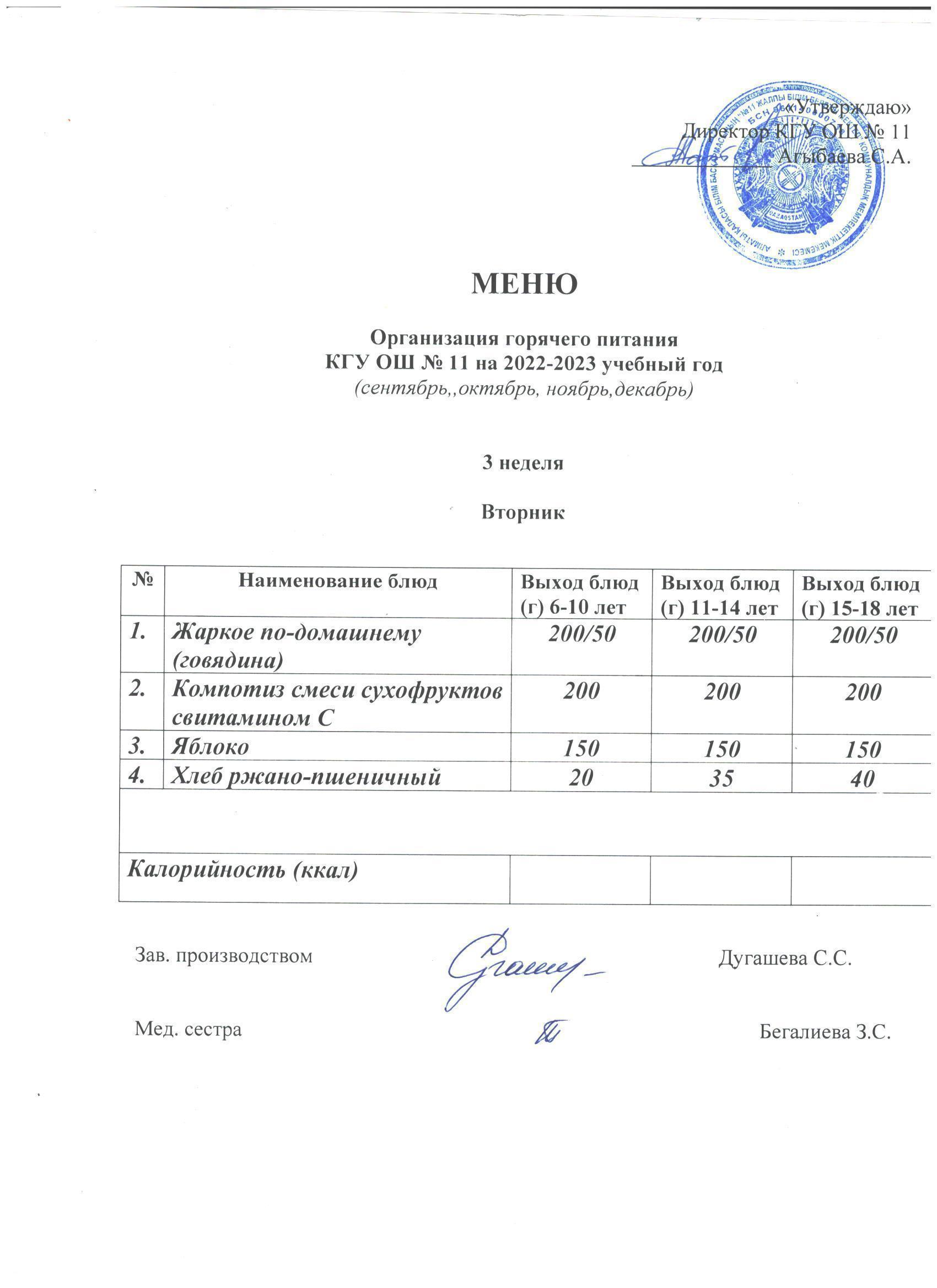 2020 жылға арналған Мектептегі тамақтану мәзірі Меню по школьному питанию на 2020