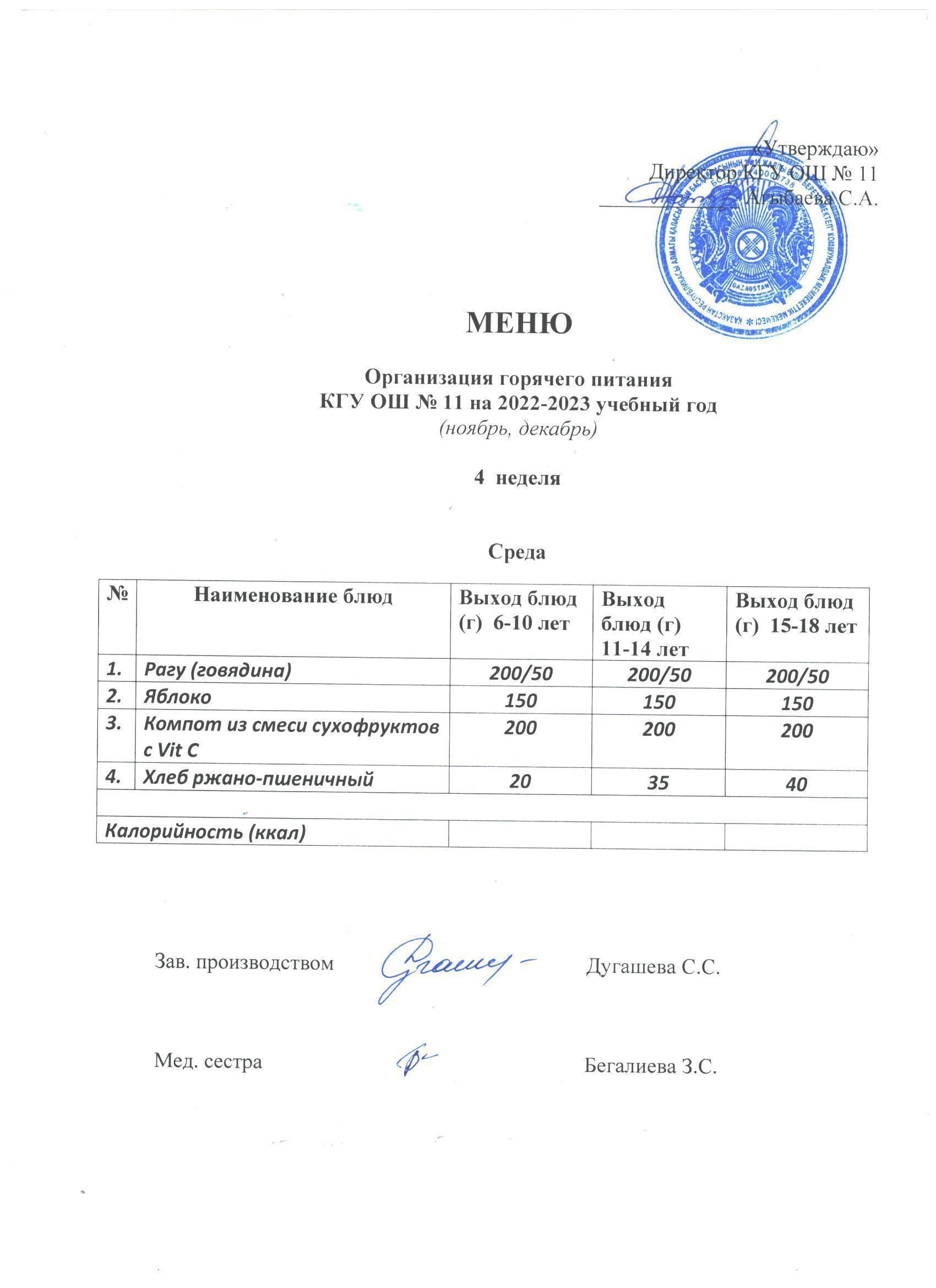 Мәзір (қыс-көктем) Меню (зима-весна)