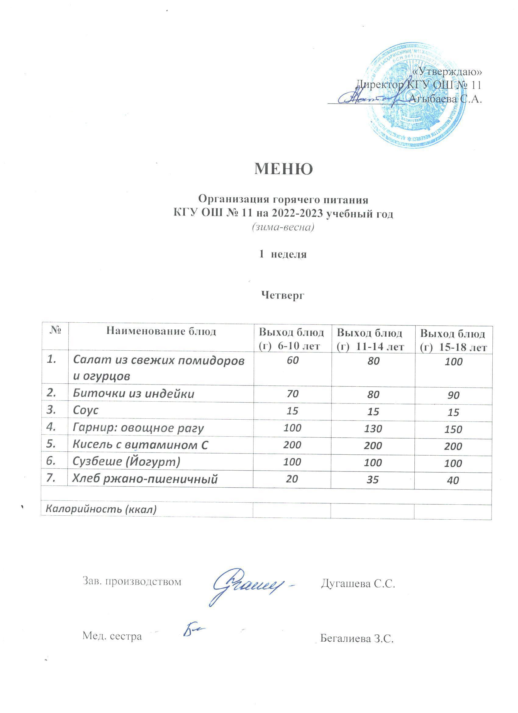Мәзір (қыс-көктем) Меню (зима-весна)