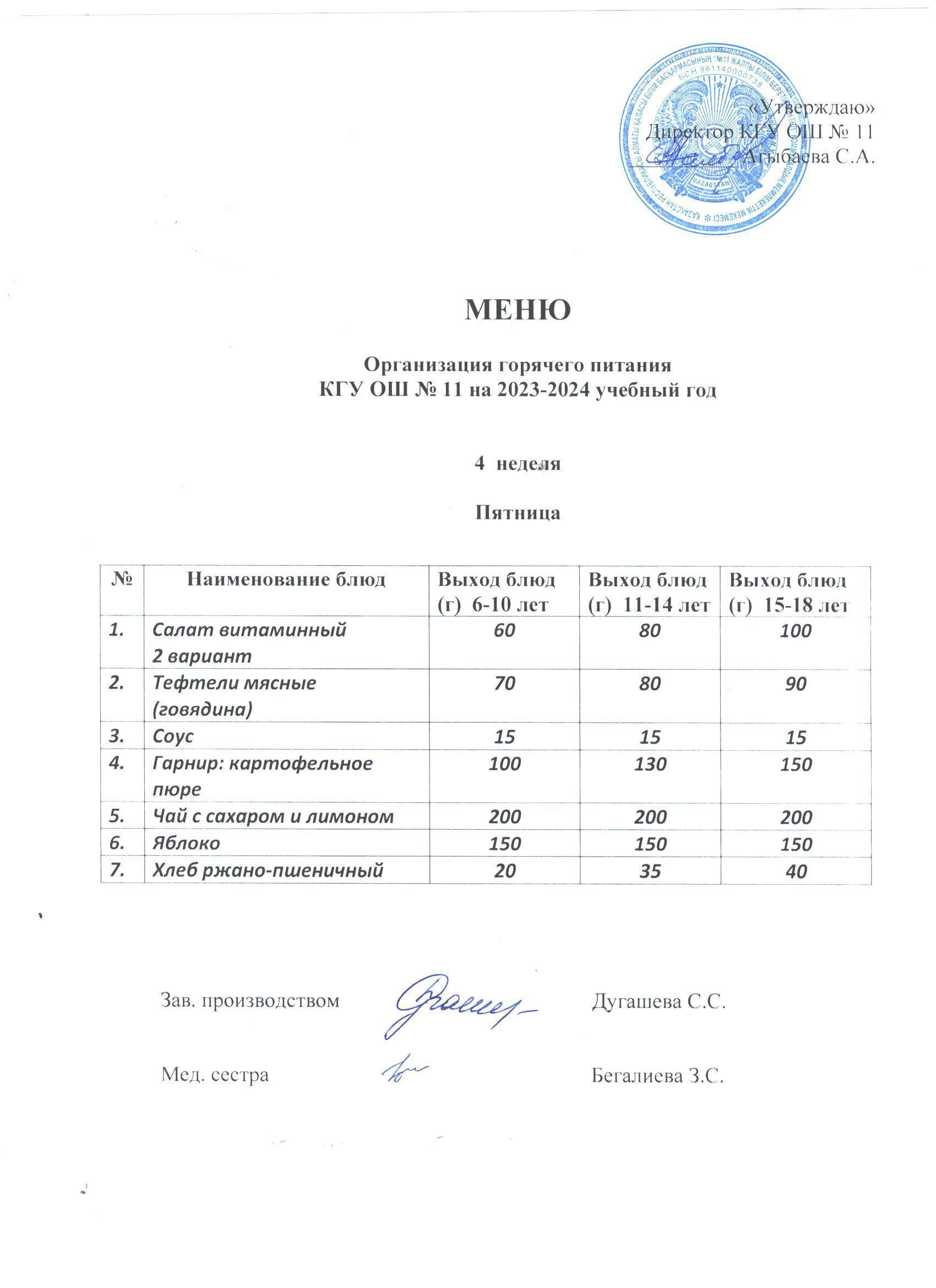 Мәзір (қыс-көктем) Меню (зима-весна)