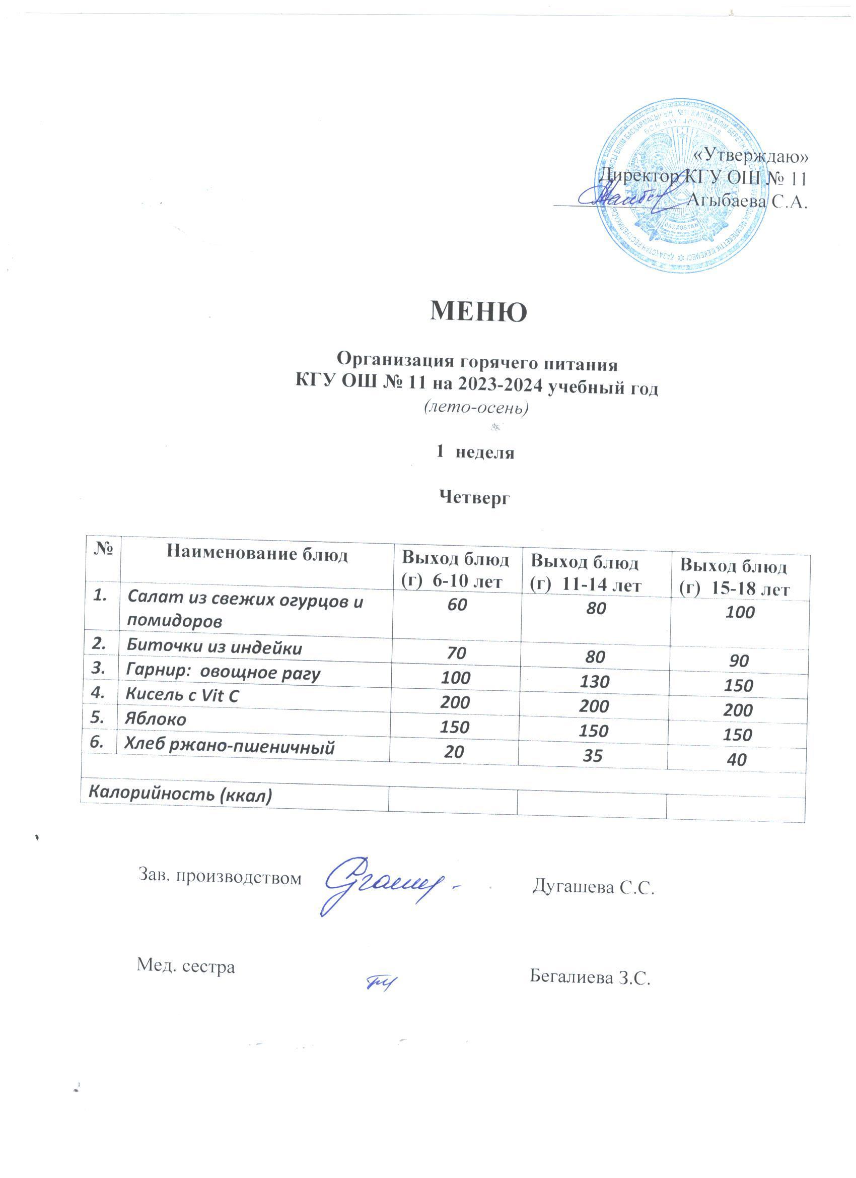 Мәзір (қыс-көктем) Меню (зима-весна)
