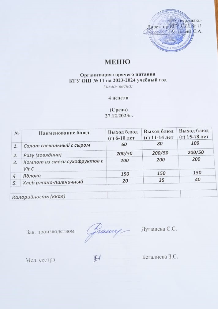 Мәзір (қыс-көктем) Меню (зима-весна)