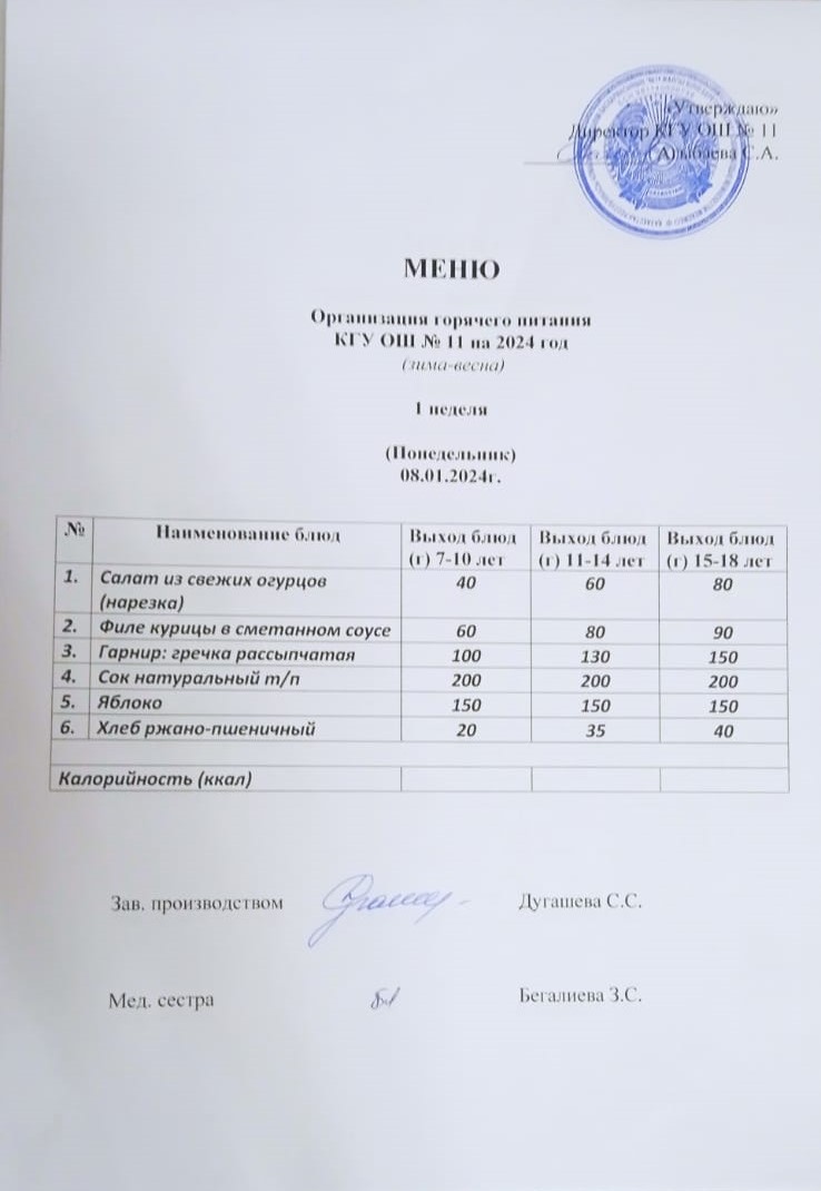 Мәзір (қыс-көктем) Меню (зима-весна)