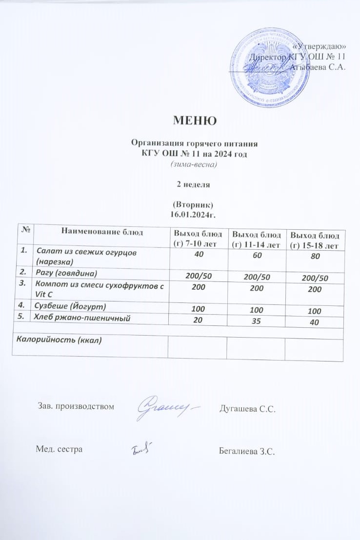 Мәзір (қыс-көктем) Меню (зима-весна)