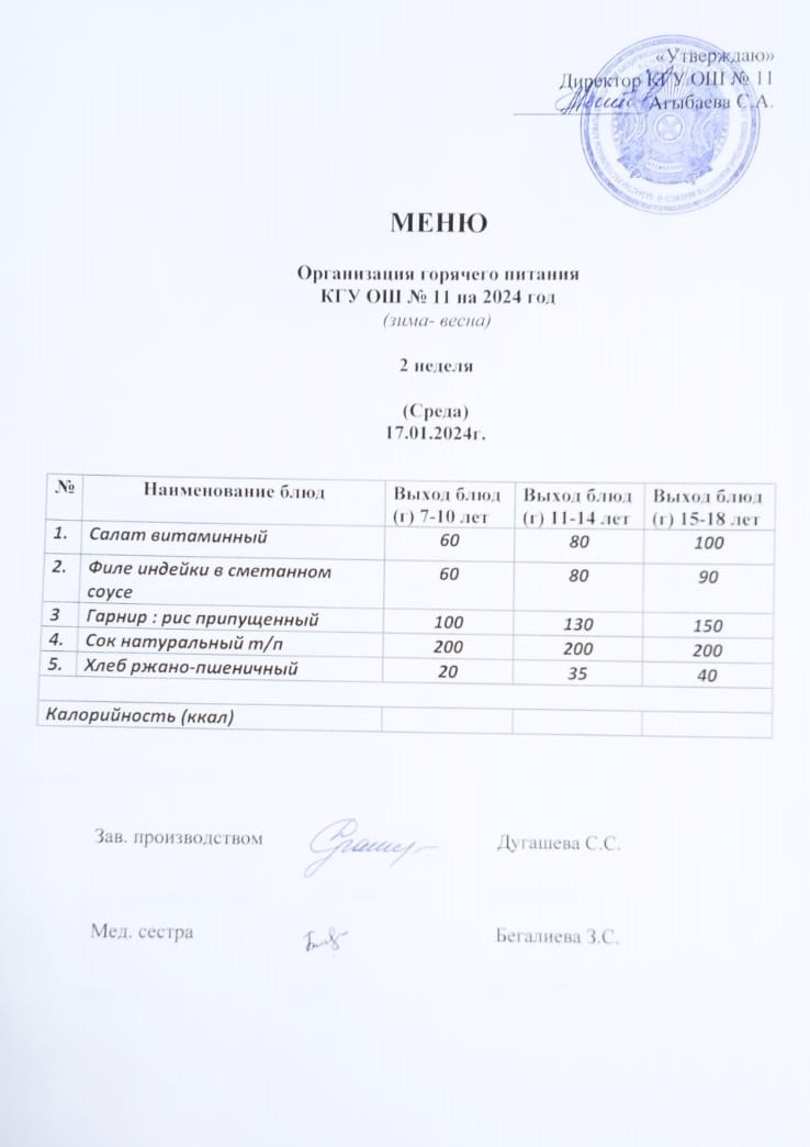 Мәзір (қыс-көктем) Меню (зима-весна)