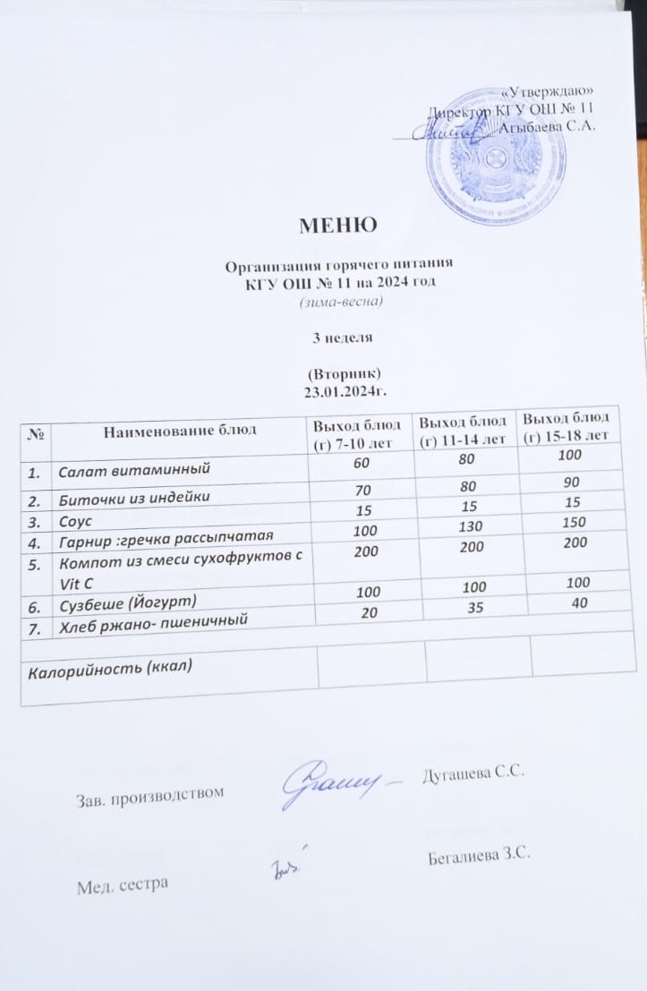 Мәзір (қыс-көктем) Меню (зима-весна)