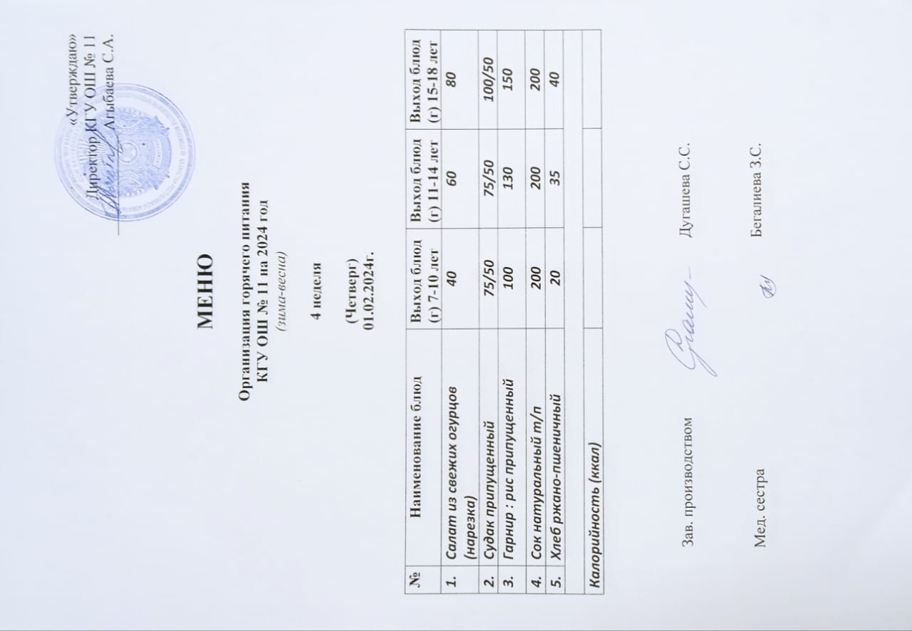 Мәзір (қыс-көктем) Меню (зима-весна)
