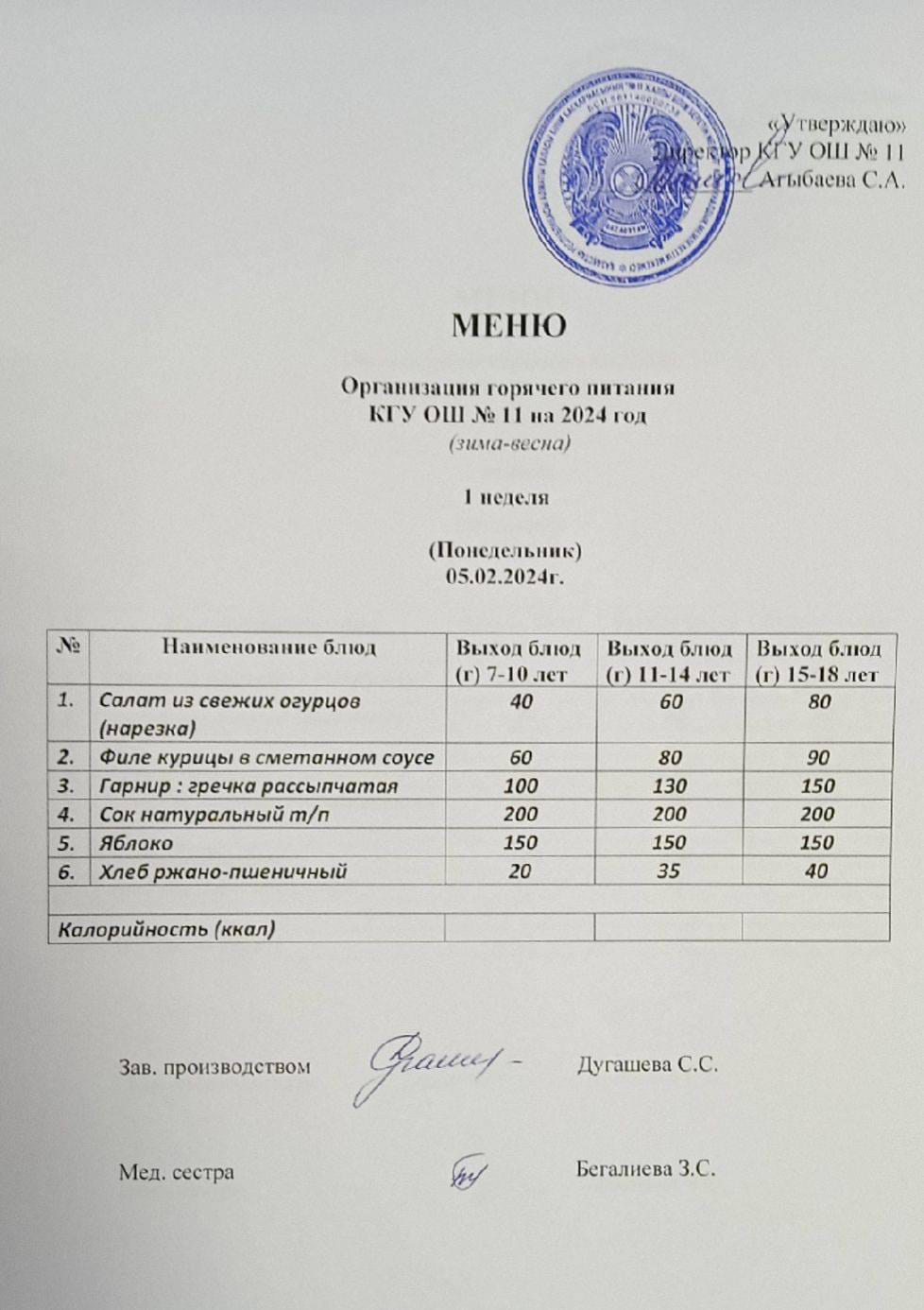 Мәзір (қыс-көктем) Меню (зима-весна)